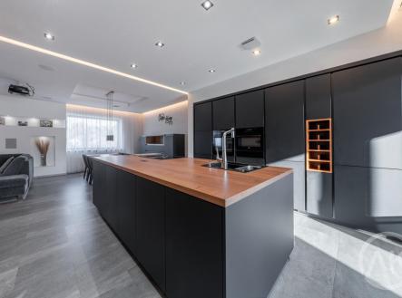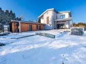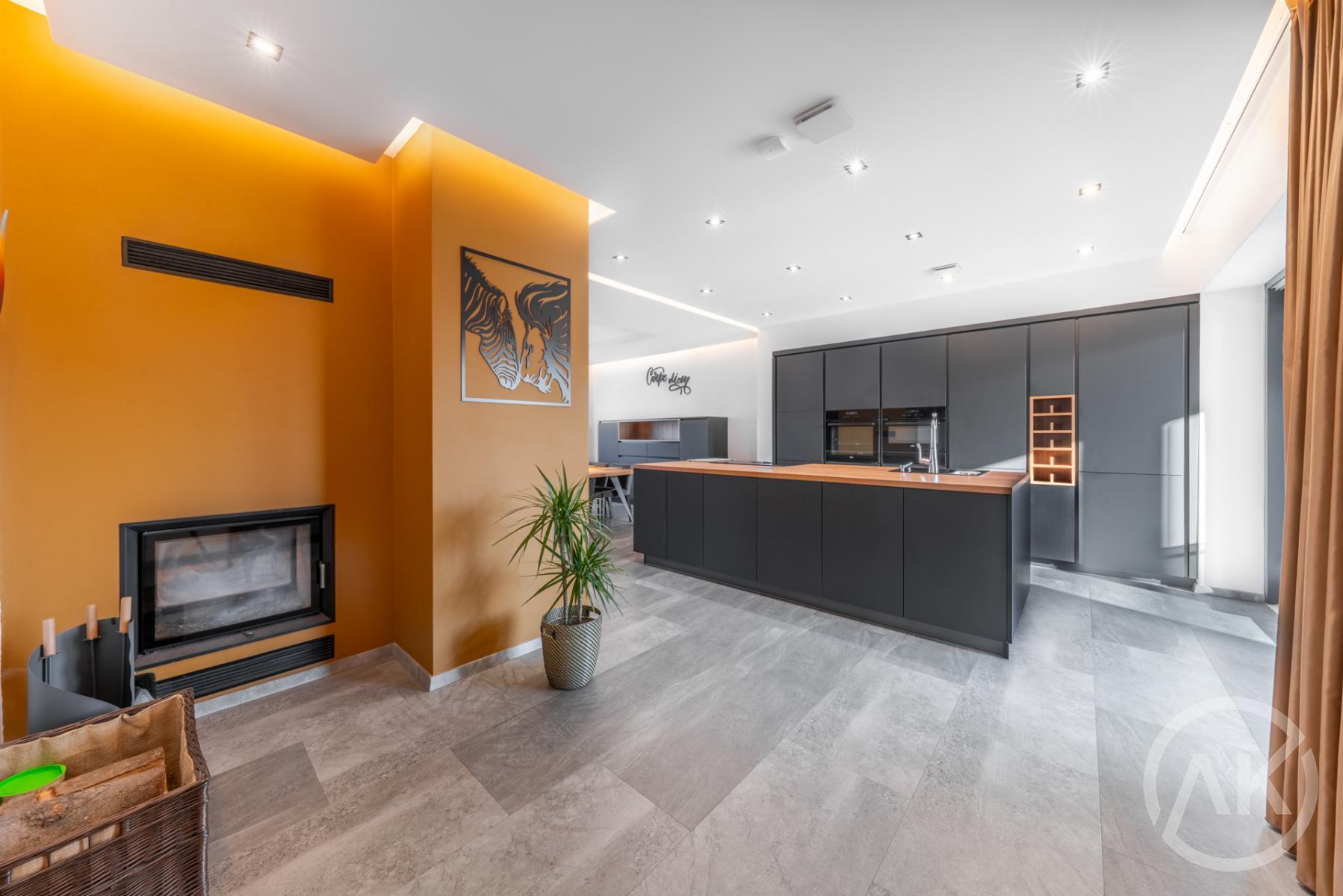 Tento zděný dům má v jídelně na stěně nápis Carpe diem. To znamená užívej dneška. Může to působit až kýčovitě, ale když tady poprvé vejdete, pochopíte. Tady můžete užívat opravdu pořádně. Kompletní rekonstrukce byla dokončena v létě 2019 a byla provedena nejen s důrazem na kvalitu zpracování, ale taky se dost přemýšlelo nad tím, aby celý dům dával smysl. Konečná dispozice je tak 6 +kk, přičemž jednu z místností majitelé využívají jako pracovnu a druhou jako velkou šatnu s prádelnou. Nadchlo mě propojení obývacího pokoje s jídelní a kuchyňskou částí, které je řešeno do tvaru L. Při práci v kuchyni to nepůsobí rušivě do obývacího pokoje. Protože je zde dostatek světla, kuchyně v kombinaci černého matu a dřeva působí skvěle a vytváří příjemnou domácí atmosféru. Je to určitě i tím, že spotřebiče jsou zabudované a celý prostor působí minimalisticky a vzdušně. Když si zapálíte krb celou atmosféru posunete ještě kousek dál, protože vás oheň přivítá hned u vstupu a hned tak vás nepustí, protože jde o dvoustrannou krbovou vložku a vidíte do ní nejen z předsíně, ale také z obývacího pokoje. Televizi, sportovní přenosy nebo hry můžete pouštět na televizi nebo zabudovaném projektoru. O zvuk se postará zabudované multikanálové repro. Až vás to uvnitř omrzí, vyběhnete přes HS portál na terasu a skočíte si do bazénu. Ten je krytý a vyhřívaný, takže sezona klidně od března do listopadu. Pergola je hliníková, bioklimatická, s výhřevem i zabudovaným osvětlením. V obou patrech jsou koupelny, vždy s vanou a sprchovým koutem. Dole pak ještě pracovna a nahoře tři velké pokoje, prádelna s šatnou a balkon. Líbí se mi i celková koncepce zahrady, protože vedle bazénu je prostor pro umístění lehátek a plynule navazuje na kůlnu, ze které lze vysunout markýzy k zastínění. V rámci maximálního užitku tady je ještě kůlna rozdělená na dvě sekce, totiž nářadí a sklad, kde můžete klidně i posedět s menší partou. Zbytek zahrady je udržovaný, s automatickou sekačkou i studnou. Oceníte i skleník, který je umístěn tak, aby nerušil celkový dojem z pěstěné části zahrady. V rámci technických věcí stojí ještě za zmínku venkovní elektrické rolety, vytápění plynovým kotlem, aktivní přítah vzduchu do krbu nebo rekuperace. Protože je dům podsklepen, je zde i prostor pro menší fitko nebo wellness. Připravil jsem pro vás půdorysy, technickou dokumentaci, průkaz energetické náročnosti budovy i virtuální prohlídku objektu. Nic z toho bohužel nedokáže nahradit dojem z domu, tak se uvidíme tam.
