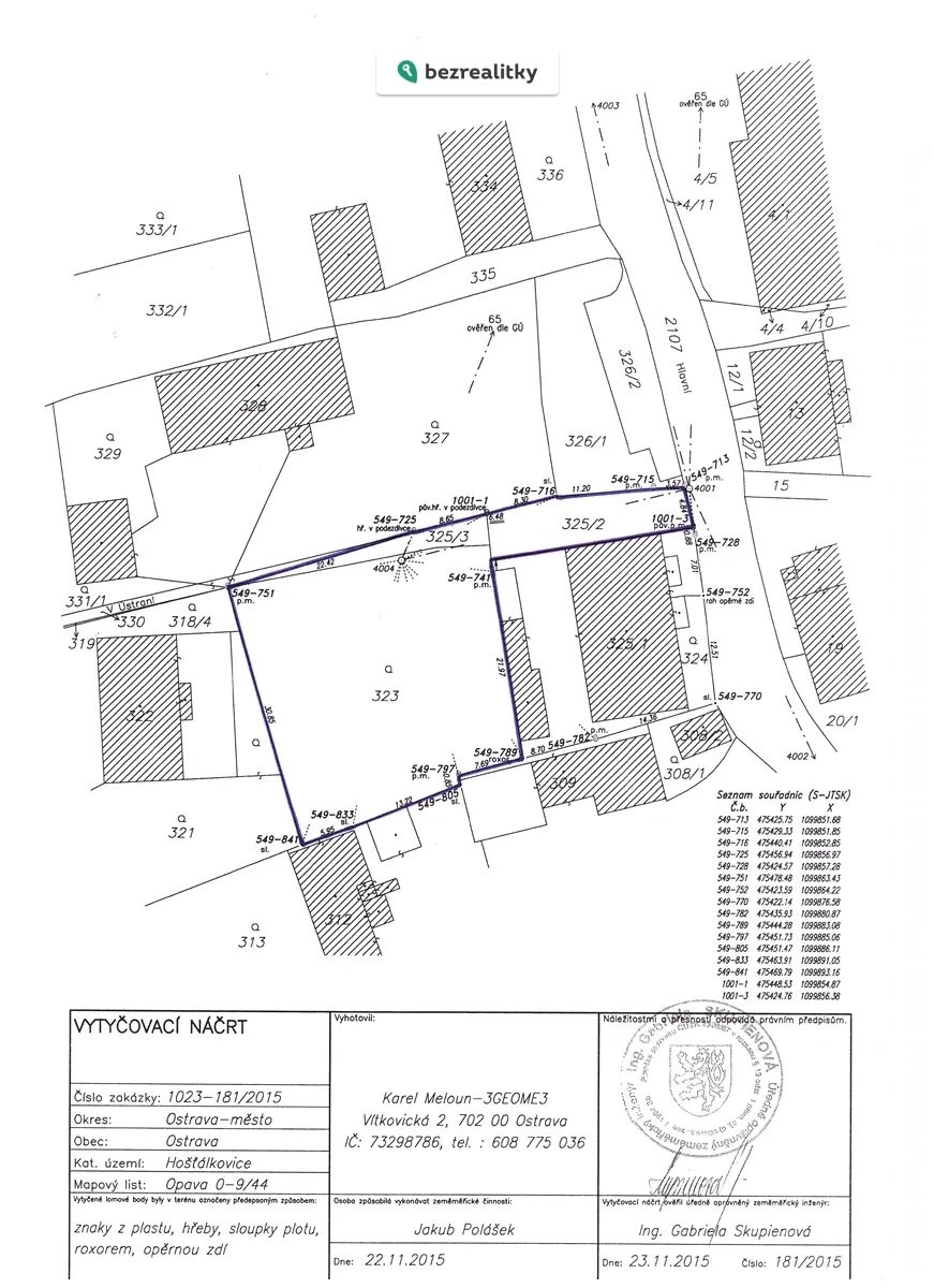 Stavební pozemek 991 m² v centru Ostravy–Hošťálkovic | Klidná lokalita | Sítě na pozemku | Přístup ze dvou ulic Nabízím k prodeji soubor tří sousedících parcel o celkové výměře 991 m², určených dle územního plánu k výstavbě rodinného domu. Pozemek se nachází v atraktivní a vyhledávané městské části Ostrava–Hošťálkovice, která spojuje klidné bydlení s výbornou dostupností do centra Ostravy i směrem na Hlučín. Hlavní výhody pozemku: ✔ Celková plocha 991 m² (parcely č. 323 – 814 m², 325/2 – 128 m², 325/3 – 49 m²) ✔ Určeno pro výstavbu 1 rodinného domu ✔ Veškeré inženýrské sítě na pozemku nebo na jeho hranici ✔ Přístup ze dvou komunikací – ulice Hlavní a V Ústraní ✔ Klidné prostředí v samotném centru obce ✔ Studie rodinného domu součástí prodeje Pozemek navazuje na stávající zástavbu a představuje ideální příležitost pro výstavbu moderního rodinného domu v již stabilizované a rozvíjející se lokalitě. Hošťálkovice jsou dlouhodobě vyhledávanou rezidenční oblastí s omezenou nabídkou stavebních parcel, což z této nabídky činí také zajímavou investiční příležitost. Veškerá občanská vybavenost je v dosahu, přičemž lokalita si zachovává svůj klid a soukromí. Prodej probíhá přímo od majitele, bez realitní kanceláře a bez provize. V případě zájmu rád poskytnu další informace nebo osobní prohlídku. Tato nemovitost je určena výhradně přímým zájemcům o koupi. Na inzerát můžete také reagovat přímo na webu Bezrealitky.