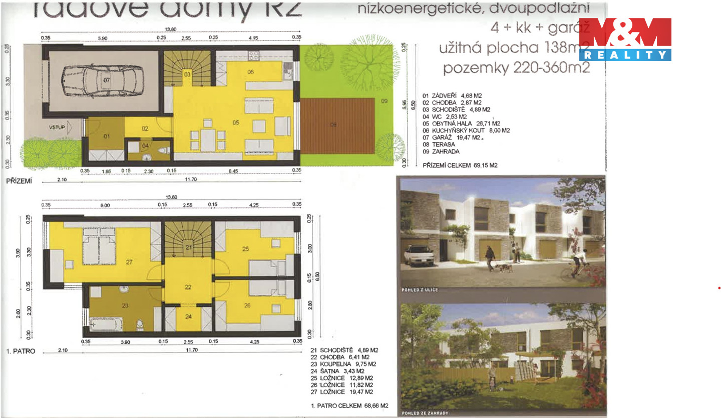 Hledáte klidné bydlení pro sebe nebo svou rodinu ? Pak pro Vás máme přesně to pravé - koupě poslední volné novostavby řadového RD v Ostravě Hošťálkovicích v rámci této výstavby. Dům nabízí dispozici 4+kk s garáží, která splní nároky jak jednotlivce, tak i moderní rodiny. V přízemí najdete zádveří, obývací prostor s kuchyňským koutem, technickou místnost s WC a přípojkou pro pračku. Ve 2.NP jsou tři pokoje, tech. místnost a velká koupelna s vanou a WC. Dům je zděný, zateplený a řešený tak, aby byl nízkonákladový a komfortní po celý rok. V celém domě je instalováno elektrické podlah. vytápění, které umožňuje v místnostech samostatnou regulaci teploty. Dům je napojen na kanalizaci. Pozemek je oplocený a nenáročný na údržbu. Celá lokalita má rezidenční charakter - malý provoz, příjemné okolí, blízkost přírody i širokou škálu občanské vybavenosti. Je to vhodné místo pro ty, kteří si cení soukromí, klidu a bezpečí. Dům je prázdný, k dispozici ihned. Info o ceně u makléře.