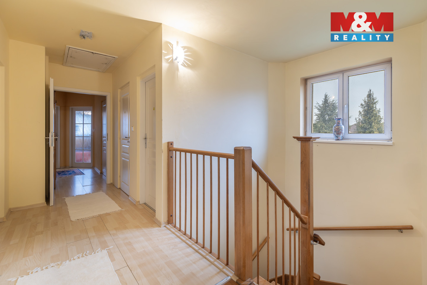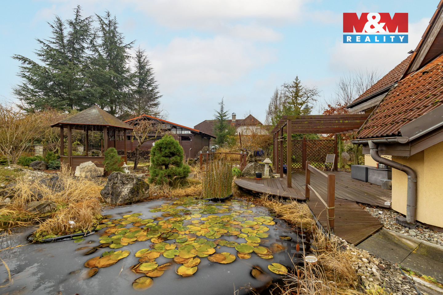 Dovolujeme si Vám nabídnout rodinný dům 7+1, částečně podsklepený, s vytápěnou prosklenou zimní zahradou a dvougaráží v žádané lokalitě Ostrava – Stará Bělá, ulice Na Zámčiskách. Zastavěná plocha a nádvoří činí 166 m², celková výměra pozemku je 1 268 m². Dům má sedlovou střechu, v podkroví se nachází úložný prostor. V prvním patře jsou čtyři pokoje, koupelna s vanou, samostatné WC, technická místnost a další dvě místnosti s vestavěnými šatnami, které lze využít dle vlastního uvážení. V přízemí se nachází vstupní hala, samostatné WC, pracovna, vytápěná prosklená zimní zahrada, pokoj s koupelnou a WC, dále kuchyň se spížírnou a jídelním koutem, obývací pokoj se vstupem na terasu a zahradu. Vytápění a ohřev vody zajišťuje kondenzační plynový kotel, dům je vybaven alarmem. Součástí pozemku je epesní okrasná japonská zahrada, vzrostlé stromy a keře, vodní jezírko a zastřešená dřevěná dvougaráž s elektrickým ovládáním. Energetická náročnost budovy se momentálně zpracovává.