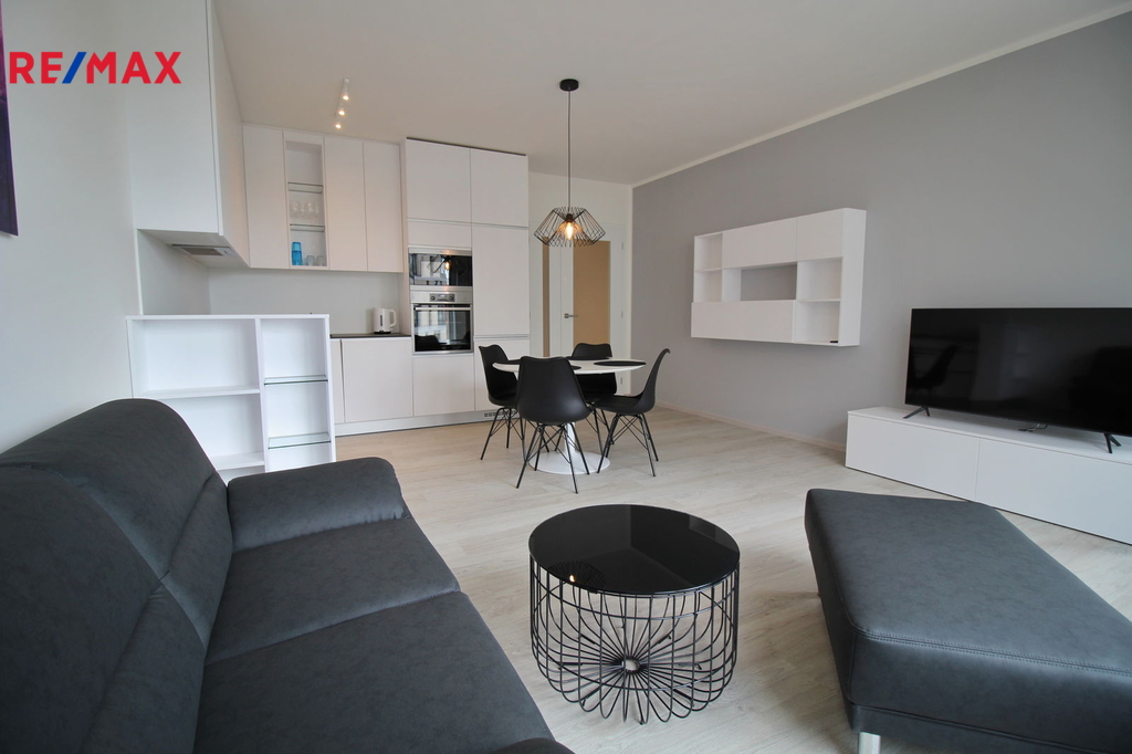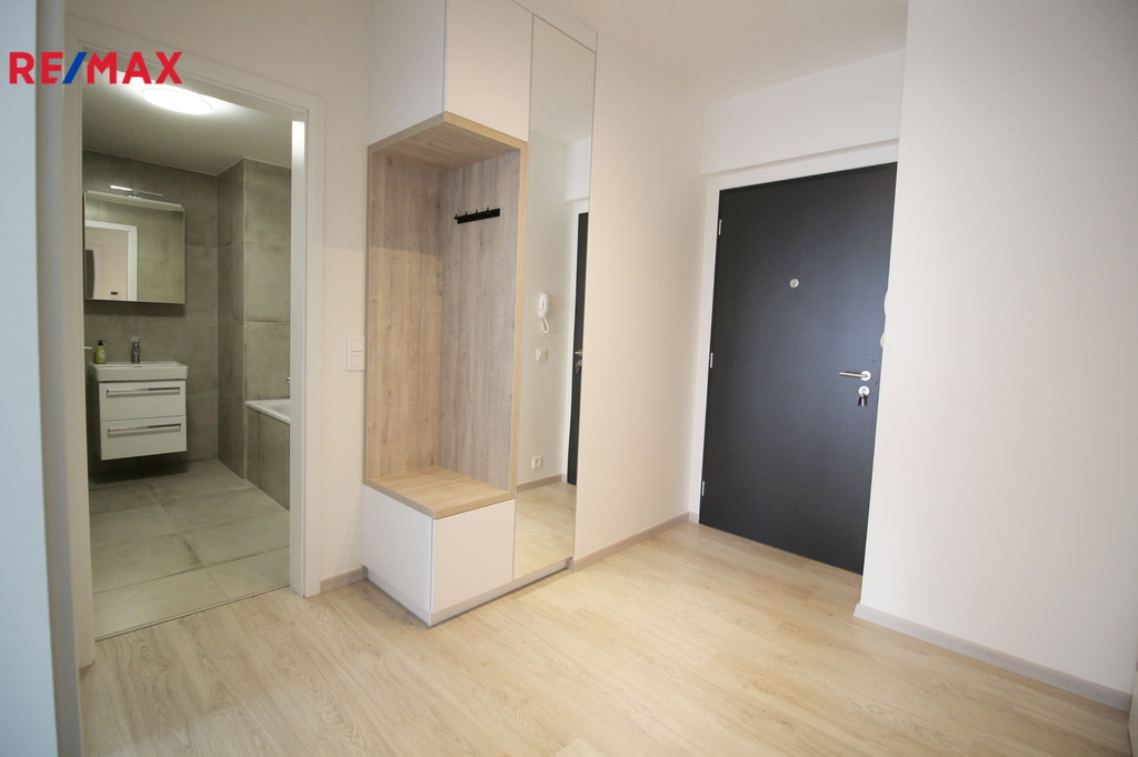 Pro domluvení termínu prohlídky kontaktujte makléře výhradně emailem. K dlouhodobému pronájmu nabízíme nadstandartní byt 2+kk s lodžií o celkové velikosti 57 m2, který se nachází v nejnovější etapě Rezidence Nová Karolina, ve 3. NP z celkem šesti. Byt je kompletně moderně zařízený, kompletně vybavena kuchyňská linka včetně všech vestavěných spotřebičů a základního nádobí. Další vybavení dle fotografií. Koupelna s vanou a WC samostatné. Součástí bytu je šatna, ve které je pračka kombinovaná se sušičkou. Přístup na lodžii je z obou pokojů, v oknech jsou venkovní žaluzie. Orientace bytu je na jihozápad. Součásti je i sklep a za příplatek lze pronajmout kryté parkovací stání. K dispozici od 3/2026. Nájem 21 000,- Kč Parkování: 2 000,- Kč Služby včetně elektřiny: 3 950,- Kč (z toho 1000,- Kč elektřina) Kauce 2x nájem.