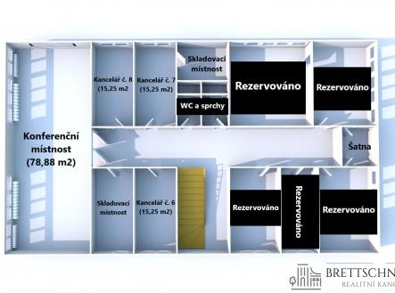 Mám pro Vás pronájem kancelářských prostor v Ostravě-Heřmanicích o celkové výměře 315 m2. Parkování před budovou na parkovišti (10 míst) nebo též podél silnice, pro cca 20 aut. Kanceláře se nachází ve 2. nadzemním podlaží z celkových 2. NP bez výtahu. Přístup do prostor, kde jsou kanceláře je skrz samostatný vstup, v průběhu ledna 2026 bude dokončeno kódovací zabezpečovací zařízení. K pronájmu je zde celkem 8 kanceláří s těmito výměrami: Kancelář č. 1 = 31,36 m2 - !REZERVOVÁNO! Kancelář č. 2 = 18,48 m2 - !REZERVOVÁNO! Kancelář č. 3 = 15,12 m2 - !REZERVOVÁNO! Kancelář č. 4 = 15,12 m2 - !REZERVOVÁNO! Kancelář č. 5 = 18,60 m2 - !REZERVOVÁNO! Kancelář č. 6 = 15,25 m2 Kancelář č. 7 = 15,25 m2 Kancelář č. 8 = 15,25 m2 Aktuálně je volných 7 kanceláří + konferenční místnost 78,88 m2. Součástí prostor pak je 2x WC se sprchovacími kouty, velká místnost, dříve užívána jako jídelna (78,88 m2), nyní možno použít jako konferenční místnost, pak dále jsou zahrnuty v pronájmu 2x skladovací místnosti (10 a 12 m2) a 1x šatna (2,7 m2). Podrobné fotografie kanceláří poskytneme na vyžádání. Ve vzdálenosti 368 metrů se nachází autobusová zastávka (U Dvora), odkud je možno se nechat dopravit po Ostravě (Poruba, Michálkovice, Ostrava hlavní nádraží, ...), ale též do vzdálenějších obcí (Dětmarovice, Karviná, Orlová, ...) = autobusy číslo 49, 543 a 553. Cena nájmu u jednotlivých kanceláří a konferenčního prostoru je 150 Kč/m2, v případě pronajmutí si celého prostoru je cena 47 250,- Kč. + Elektrická energie, svoz komunálního odpadu a vodné a stočné je paušálně hrazeno pronajímateli. Odměna za zprostředkování je u jednotlivých kanceláří podle výše 1 nájmu za každou jednotlivou kancelář, při zprostředkování celého prostoru pak 57 172,- Kč s DPH. Tomáš Brettschneider certifikovaný realitní makléř
