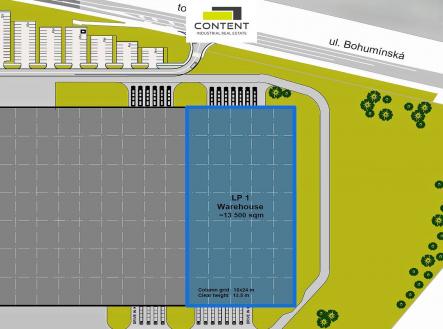 Pronájem skladu, výrobních prostor Ostrava, Hrušov. V zastoupení majitele a bez provize nabízíme velice kvalitní, variabilní nebytové prostory, umístěné v novostavbě komerční budovy, v rámci moderního komerčního parku u D1. K dispozici samostatné industriální prostory, skladové, velkoobchodní, výrobní či provozní prostory 13.500 m². - k dispozici ihned, - lze dělit na menší celky, - nákladní vstupy z hydraulických krytých ramp i vjezdy v úrovni vozovky, - bezprašné podlahy s vysokou nosností, - světlá výška 13,5 m, led osvětlení, - cross dock hala, - kanceláře, zázemí, showroom na míru, dle požadavku, - příjezd a manipulace TIR bezproblémové, - ostraha, parkovací plochy, MHD, kantýna v areálu, - perfektní lokalita přímo u exitu 365 z D1, - nedaleko zastávky železniční tratě Ostrava - Bohumín, Cena dle dalších podmínek smlouvy + služby. Pobídka : 6 měsíců rent free! Fotografie jsou ilustrační. Pro více informací nás kontaktujte.