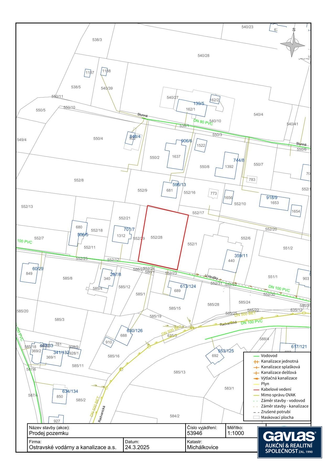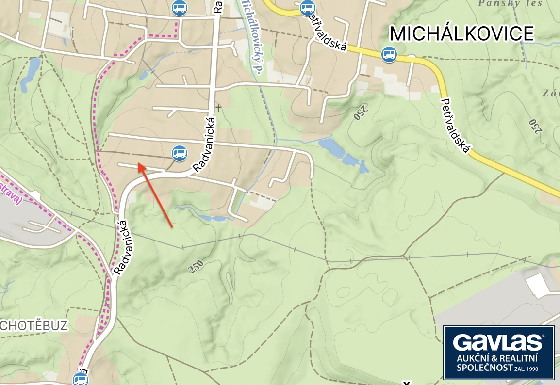 Stavební pozemek pro výstavbu RD v Ostravě Michálkovicích. Nabízíme k prodeji stavební pozemek o výměře 965 m², parcelní číslo 552/28, situovaný v klidné části městského obvodu Michálkovice v Ostravě na ulici U Hrušky. Specifikace pozemku: • Celková plocha: 965m². • Typ pozemku: Stavební, z části rovinatý terén, z části s mírným sklonem. • V proluce mezi stávajícími rodinnými domy. • Příjezd z části po asfaltové komunikaci, z části obecní, z části soukromé (bude řešeno věcným břemenem). Inženýrské sítě - viz. fotodokumentace: • Veřejný vodovod, plyn a elektřina vedou bezprostředně podél hranice pozemku v pozemku příjezdové komunikace. Kanalizace v ulici U Hrušky je v investičním plánu Statutárního města. Lokalita a okolí: • Tato lokalita tvořená rodinnými domy je obklopena rozsáhlými lesy a vytváří tak podmínky pro klidné rodinné bydlení s možností sportovního i rekreačního využití. • Základní občanská vybavenost v obci – škola, školka, obchody, pošta, úřad městského obvodu a praktický lékař jsou přímo v Michálkovicích. • Centrum Ostravy i nákupní centra jsou v dojezdové vzdálenosti do 6 km (do 8 min). • Zastávka MHD cca 170 m. Možnosti využití: • Dle ÚP možnost výstavby zejména rodinného domu a souvisejících staveb, zahrady, případně i bytového domu se 2. NP a podkrovím – blíže viz. Fotodokumentace Pro více informací nás kontaktujte ještě dnes.