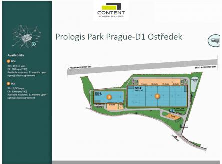 Pronájem skladu, výrobních prostor 10200 m² Ostředek. V zastoupení majitele a bez provize nabízíme prostory novostavby, vhodné pro sklad nebo výrobu, s celkovouvýměrou 20570 m². Budova je umístěna v rámci nového, moderního komerčního areálu s ostrahou, přímo u dálničního sjezdu D1, EXIT 34. - k dispozici do 11 měsíců od podpisu smlouvy ( cca polovina budovy DC4), - velice kvalitní nové skladové nebo výrobní prostory s výškou 10 m, - bezprašné podlahy s nosností minimálně 5 t/m², - vstupy z hydraulických ramp i v úrovni vozovky, - světlíky sprinklery, EZS, EPS, - příjezd a manipulace TIR bezproblémová, - dostatečné parkování a manipulace zajištěny, - kancelářské prostory, vzorkovna budou dobudovány na míru, dle potřeb budoucího nájemce, - v areálu ihned k dispozici 4000 m² - 6000 m² Přesná cena bude stanovena dle m² a dalších podmínek smlouvy. Fotografie jsou pouze ilustrační, z předchozích projektů. Pro další informace nás kontaktujte.