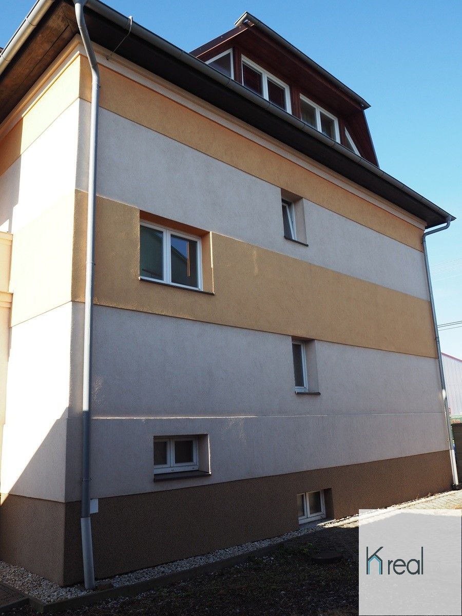 Nabízíme k prodeji dům (ul. Mostecká, Otovice u Karlových Var) o užitné ploše 291 m2 a zastavěné ploše 108 m2, který je v současnosti veden v KN jako stavba pro výrobu (lze předělat na objekt bydlení) a dále výrobně – skladovací halu o užitné ploše 144 m2 a zastavěné ploše 173 m2 nacházející se uvnitř areálu. Přízemní hala byla postavena v roce 2009 a je zateplena (polystyren). Dům je zděný a zateplen (polystyren tl. 8 cm). Je celý podsklepen a má dvě nadzemní podlaží a obytné podkroví. V roce 2006 proběhla celková rekonstrukce objektu. V domě se nachází tyto místnosti: I.PP – sklep (5 místností). I.NP – vstup do domu, chodba se schodištěm, chodba, 3 výrobně kancelářské prostory z toho jeden s kuchyní a koupelna s WC (sprcha) – snadná možnost předělat na byt 3+kk. II.NP – chodba se schodištěm a vstupem na balkon, 3 kancelářské prostory z toho jeden s kuchyní a koupelna s WC (sprcha) – snadná možnost předělat na byt 3+kk. Obytné podkroví – obývací pokoj, ložnice, koupelna s WC (sprcha) a chodba. Okna jsou plastová. Vytápění je ústřední kotlem na plyn, ohřev TUV bojler kombinovaný. Dům je napojen na všechny v místě dostupné inženýrské sítě (voda, kanalizace, el. a plyn). Na pozemku před halou se nachází velká parkovací plocha z betonové zámkové dlažby. Celková plocha pozemků je 1.004 m2, pozemky jsou rovinaté. Vzhledem k tomu, že před zadáním do inzerce nebyl vyhotoven PENB, je tento dům v souladu s platným zákonem zařazen do energetické třídy G. Dům je vhodný pro bydlení spojené s podnikáním. Doporučujeme k prohlídce.