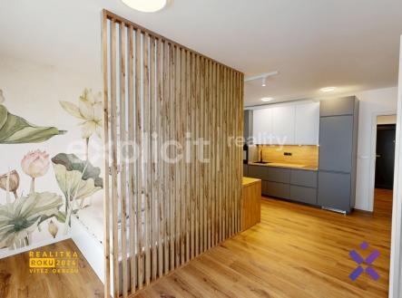 Moderní byt 1+kk 39,6 m2 s předzahrádkou a parkováním v klidné lokalitě u Zlína Lokalita: Otrokovice - Kvítkovice (Zlín) Velikost: 1+kk s podlahovou plochou 39,6 m2, s předzahrádkou 35,3 m2 a sklepem 2,95 m2 Stav: novostavba dokončena 4/2025, moderně zařízený byt Ideální pro: jednotlivce nebo pár Dostupnost: 3 min na dálnici, 10 min do Zlína, 3 min. zastávka MHD, 3 min vlakové nádraží, 3 min od OC Centro Malenovice Popis: Nabízíme k pronájmu nový, částečně vybavený, prostorný byt 1+kk s vlastní předzahrádkou, situovaný v klidné zástavbě rodinných domů. Byt je součástí novostavby a je vybaven kvalitním moderním zařízením. Velkou výhodou je příjemné klima i v letních měsících (venkovní žaluzie), bezúdržbová předzahrádka a vlastní parkovací stání. Vybavení bytu: • podlahové vytápění / chlazení • osvětlení s nastavitelnou inzenzitou svícení v celém bytě • venkovní žaluzie s ovládáním, plisse síť proti hmyzu • předsíň s vestavěnou skříní a botníkem na míru (bude dokončena 6/2025) • nová kvalitní pračka LG umístěná ve skříni • koupelna s walk-in sprchou, skříňka pod umyvadlem na míru (dokončení 6/2025) • kuchyňská linka: lednice, myčka, trouba, varná deska, digestoř s odtahem, granitový dřez s baterií se sprškou • pracovní stůl / bar / jídelní prostor • oddělený spací prostor (lamely), postel 160x200 cm s velkým úložným prostorem • designová tapeta, prostorná skříň Exteriér: • bezúdržbová předzahrádka s živým plotem, bylinkovým záhonem, truhlíky s pampovou trávou • výhled do ovocného sadu z předzahrádky • prostorný sklep 3 m2 (kolo, lyže, kočárek, nábytek) • komunitní zahrada za domem • vlastní parkovací stání se zábranou Byt je vhodný pro pracujícího jednotlivce nebo pár. k nastěhování od 01.03.2026. Cena: 12 500 Kč/měs. + 500 Kč/měs. parkovací místo + zálohy na energie (2 620 Kč zálohy na vodné stočně, úklid společných prostor atd + 800 Kč elektřina) Budu se těšit na společné prohlídky tohoto krásného bytu. Ing. Martin Souček, realitní makléř Explicit Reality.