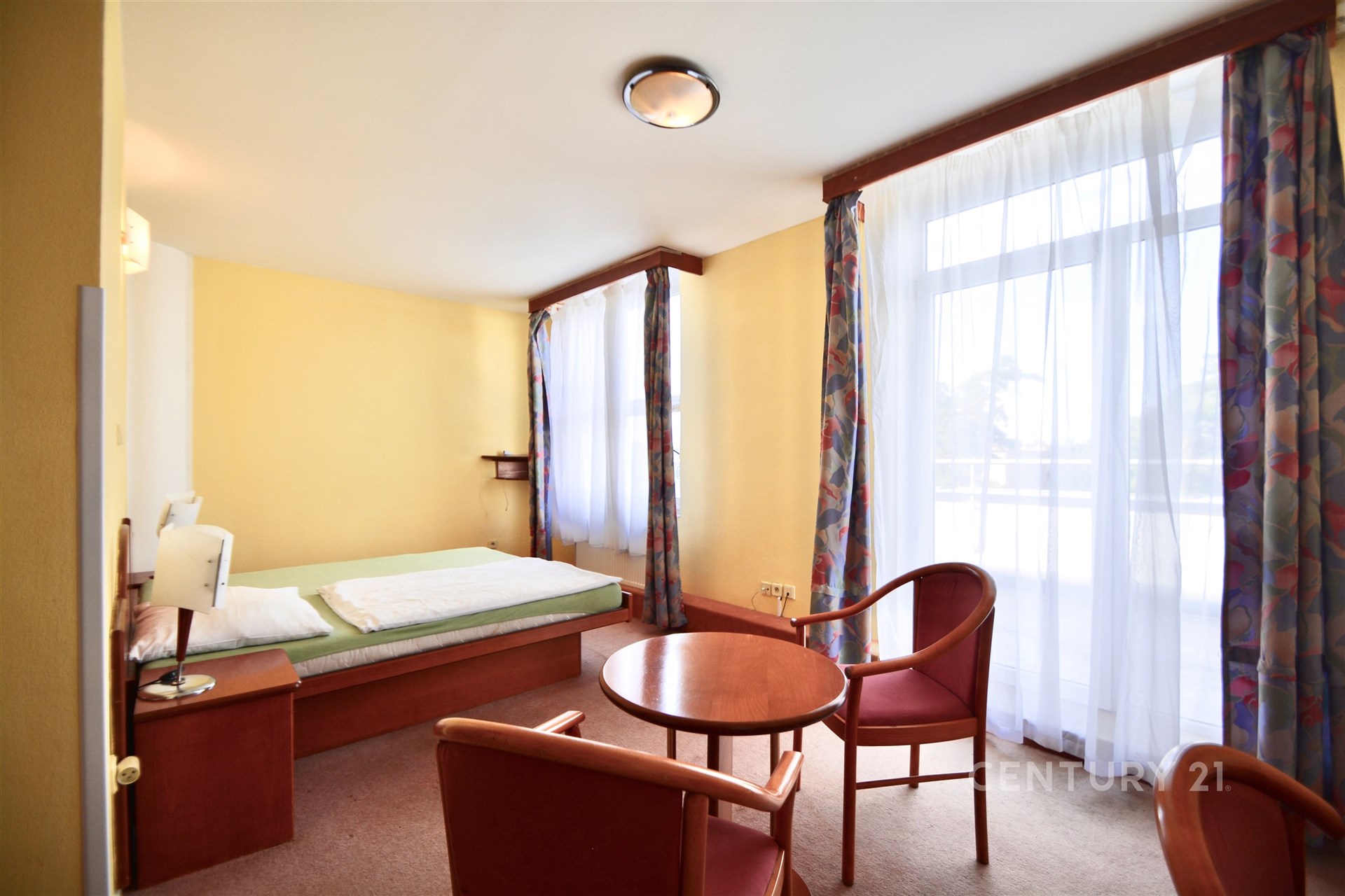 Vybavený pokoj 21m2 s přímým východem na terasu, vlastní kouplenou a WC. V pokoji je k dispozici manželská postel, šatní skříň, psací stůl, stolek a tři křesla. Měsíční nájem pro jednu osobu je 10.500Kč a zahrnuje i platby za energie (voda, elektřina, teplo) a také výměnu ložního prádla 1x za 14 dní. Cena za dvě osoby je 14.000Kč. Kauce není vyžadována! V budově je k dispozici recepce 24h, Vietnamská restaurace/bistro, kavárna. Ideální pro 12 osoby. Přístup do pokojů je bezbariérový (výtah). Parkování zdarma na vyhrazeném parkovišti před budovou. Toto bydlení je ideální i pro osamělé osoby, nebo starší osoby, které nemají možnost využít služeb domova pro seniory. Zaměstnanec recepce Vám může v případě potřeby zajistit každodenní kontrolu stavu, asistenci při nákupu potravin, nebo léků v případě nemoci, výměnu ložního prádla, Vyprání Vašeho prádla, atd.... Díky tomu, že zařízení nepožaduje kauci, je toto ubytování vhodné i pro zájemce, kteří by jinak měli problém zajistit si dostatečnou celkovou částku pro zahájení bydlení, která je jinde obvykle ve výši minimálně 3 měsíčních nájmů. Na tuto nemovitost je možné čerpat státní příspěvek na ubytování. Pro více informací a prohlídku volejte makléři.
