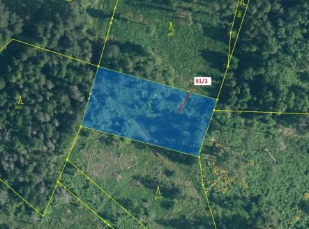 Lesní pozemek o výměře 1958 m2, podíl 1/1, katastrální území Velešice u Pačejova, obec Pačejov, obec