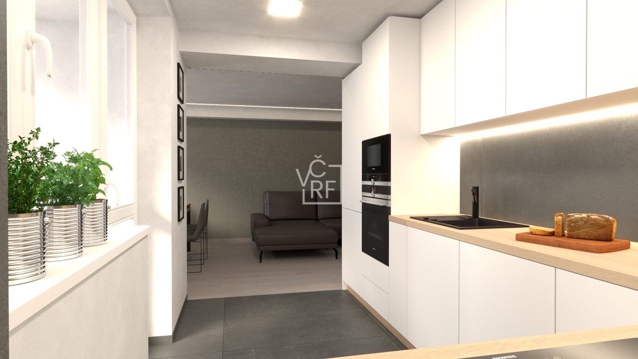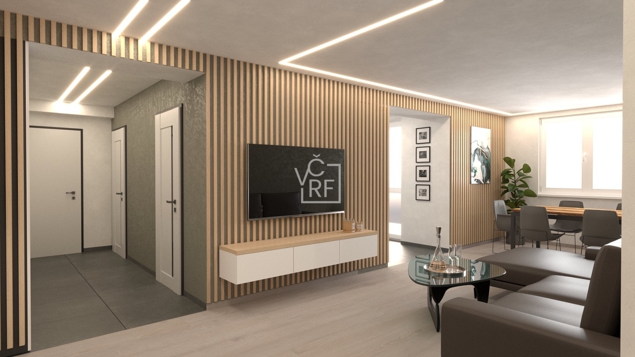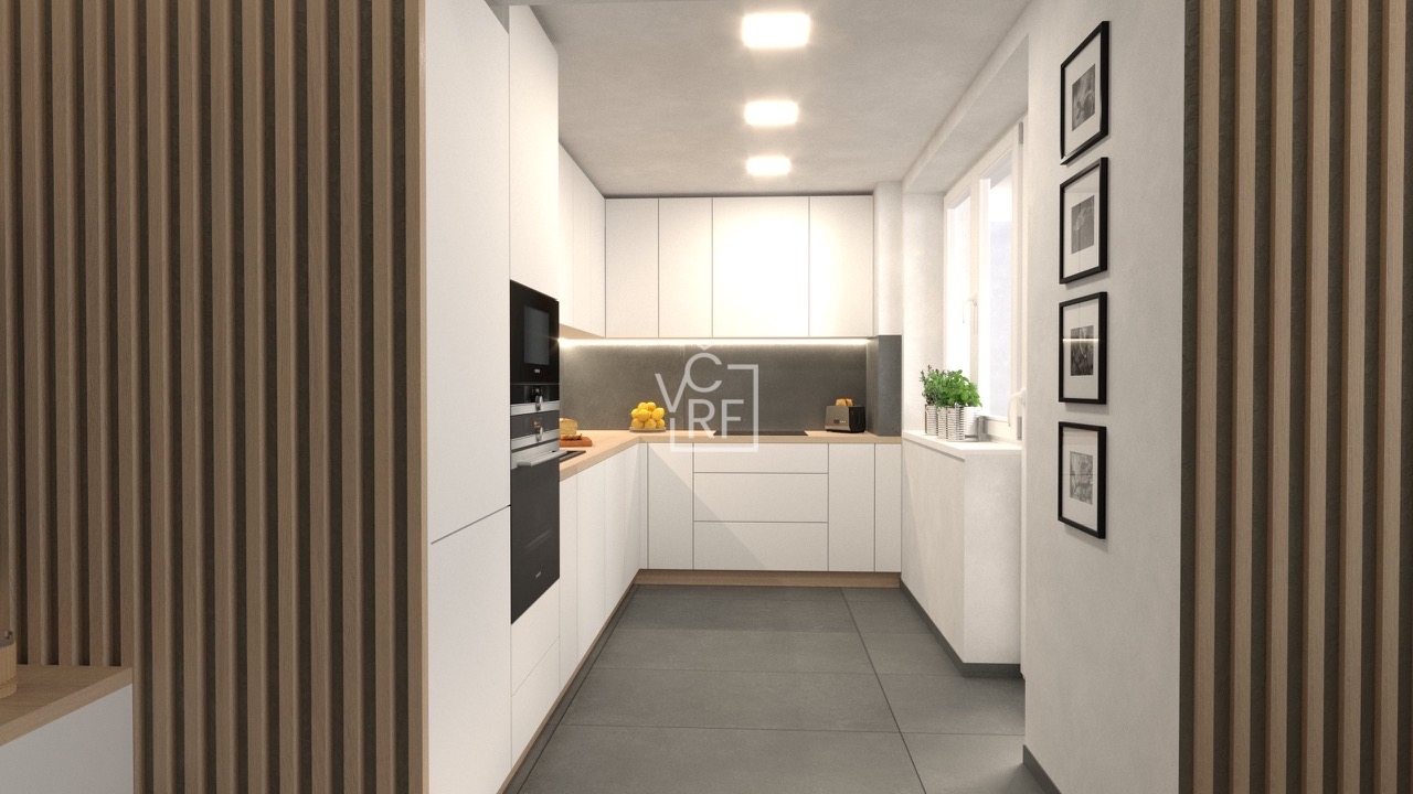 Nabízíme Vám ke koupi byt o dispozici 3+kk a podlahové ploše 95 m2, který se nachází v 7. nadzemním podlaží revitalizovaného bytového domu. K bytové jednotce náleží dvě lodžie o velikosti 5,5 m2 a 7,1 m2 a sklep. Dispozice bytu: vstupní chodba, koupelna s vanou, WC, prostorný obývací pokoj s jídelnou a kuchyňským koutem, samostatné dva pokoje, z nichž má každý vlastní šatnu a technická místnost. Byt prochází kompletní rekonstrukcí, díky které nabízí moderní a komfortní bydlení bez nutnosti dalších investic a z toho důvodu jsou aktuálně použity vizualizace budoucího stavu. Velkou výhodou je rezidenční parkování ve vnitrobloku. Jedná se o bydlení v samotném centru města s veškerou občanskou vybaveností v docházkové vzdálenosti. Více informací o aktuálně realizované rekonstrukci telefonicky či na osobní schůzce přímo na nemovitosti.