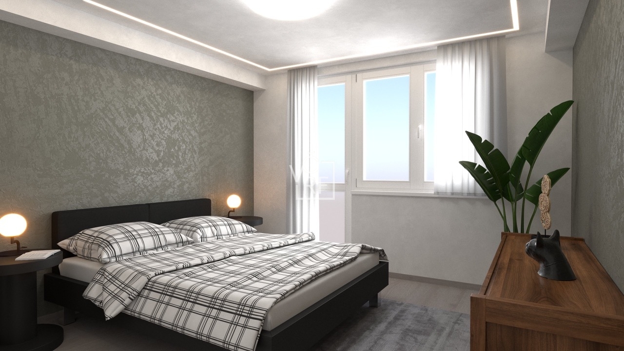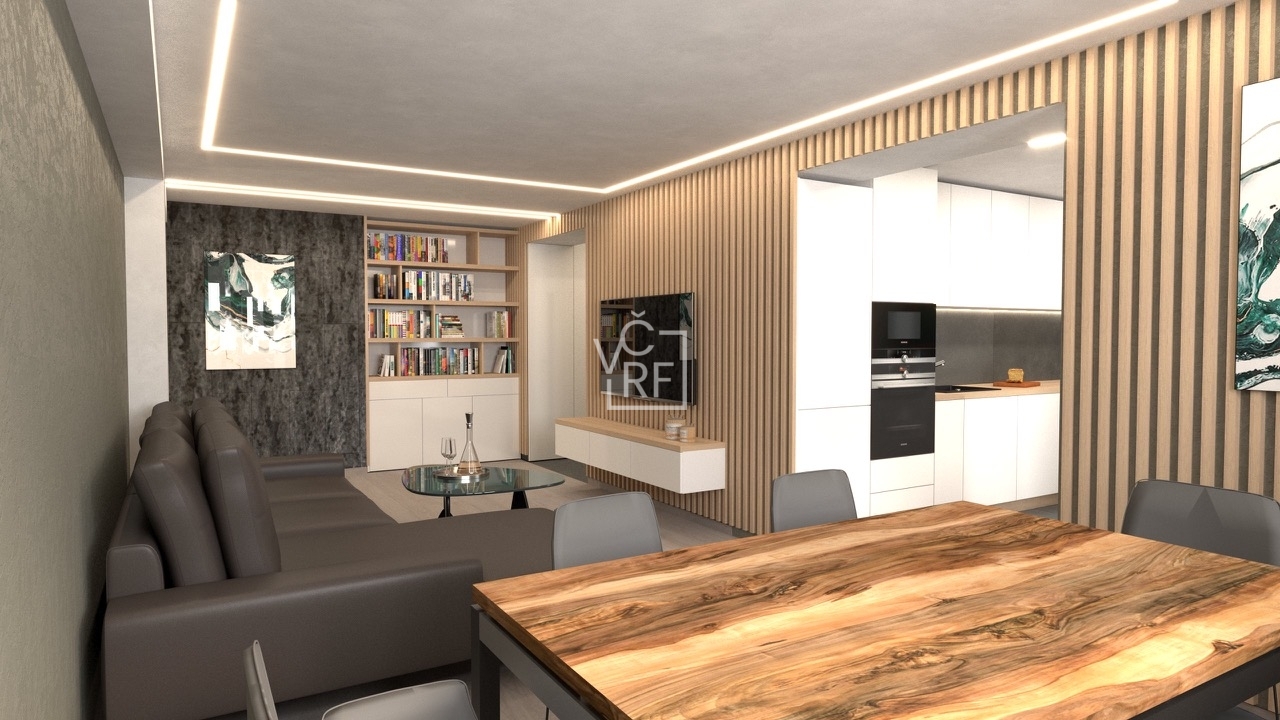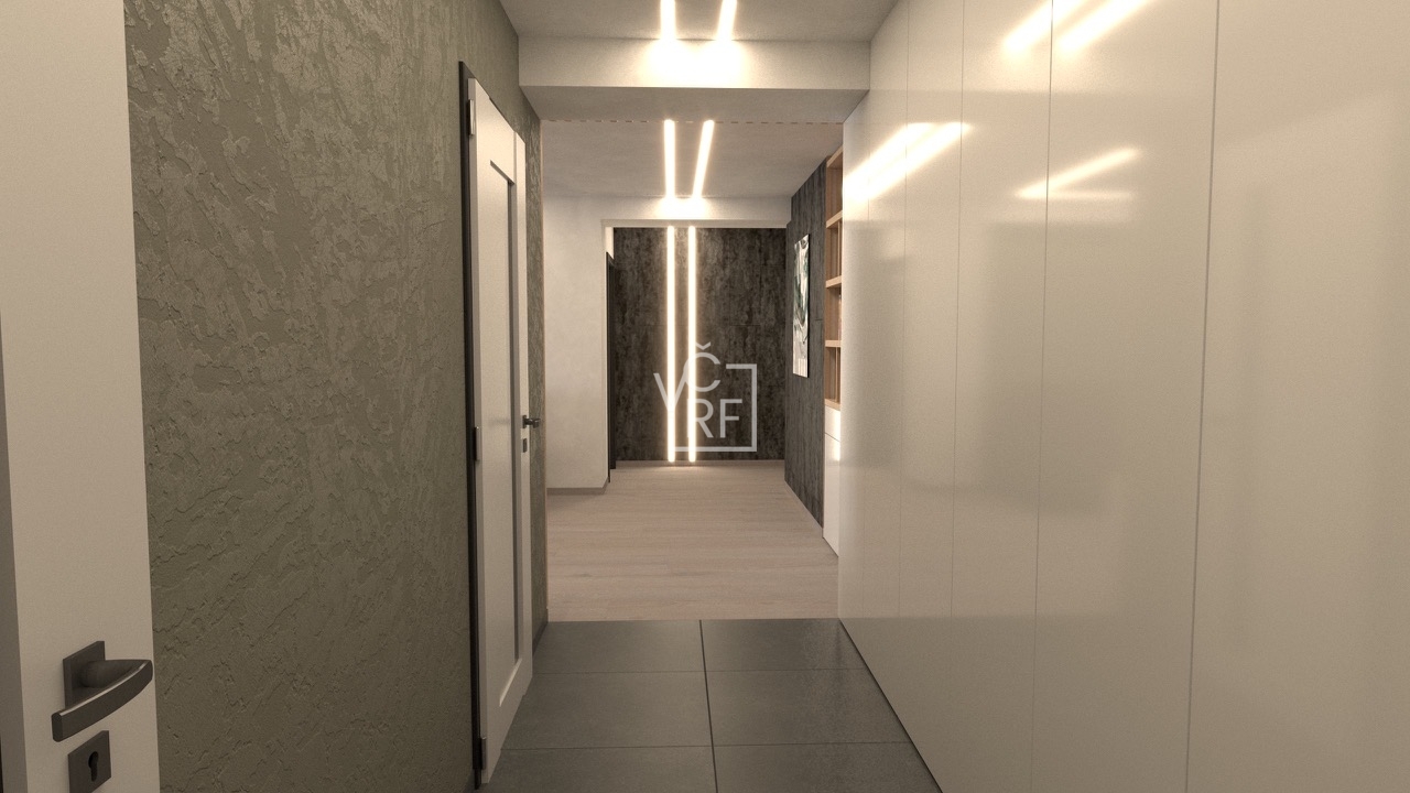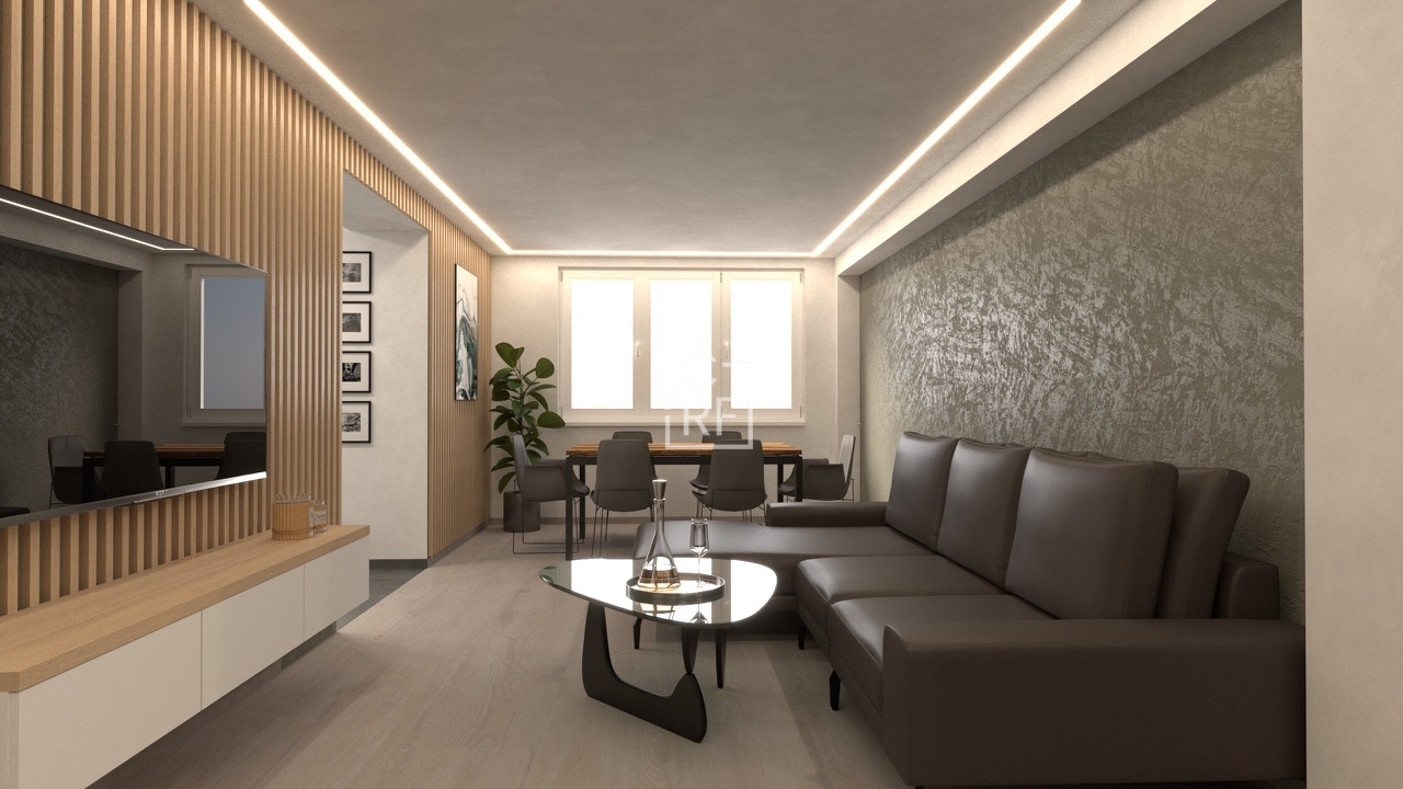 Nabízíme Vám ke koupi byt o dispozici 3+kk a podlahové ploše 95 m2, který se nachází v 7. nadzemním podlaží revitalizovaného bytového domu. K bytové jednotce náleží dvě lodžie o velikosti 5,5 m2 a 7,1 m2 a sklep. Dispozice bytu: vstupní chodba, koupelna s vanou, WC, prostorný obývací pokoj s jídelnou a kuchyňským koutem, samostatné dva pokoje, z nichž má každý vlastní šatnu a technická místnost. Byt prochází kompletní rekonstrukcí, díky které nabízí moderní a komfortní bydlení bez nutnosti dalších investic a z toho důvodu jsou aktuálně použity vizualizace budoucího stavu. Velkou výhodou je rezidenční parkování ve vnitrobloku. Jedná se o bydlení v samotném centru města s veškerou občanskou vybaveností v docházkové vzdálenosti. Více informací o aktuálně realizované rekonstrukci telefonicky či na osobní schůzce přímo na nemovitosti.