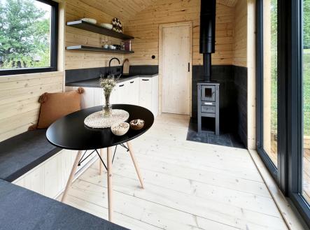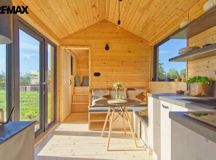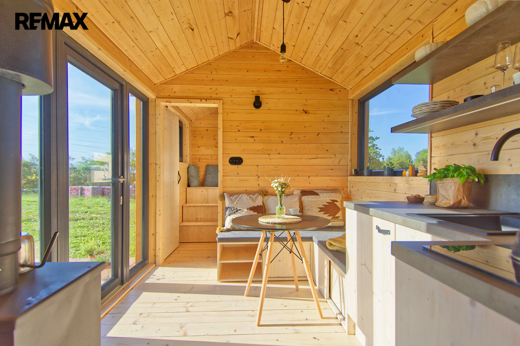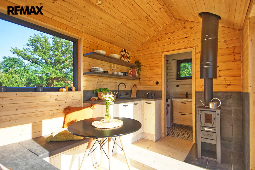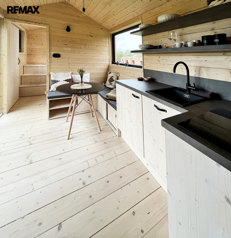 Zprostředkujeme stavbu Tiny house na vašem pozemku, včetně kompletního servisu, konzultací, individuálního řešení dle Vašich požadavků. Orientační cena dle provedení 0,95 - 1,3 mil Kč +DPH. Možnost propojení více modulů. Plně prefabrikovaný a mobilní Tiny house, který může sloužit jako startovací bydlení, glamping nebo kancelář skladbou navržený pro celoroční užívání. Jako základ domku je navrženo 6 jednoduchých lokálních patek ze ztraceného bednění (vrch patek cca 10 cm nad upraveným terénem). Domek o vnějších rozměrech např. 7x3,6 m tvoří nosná konstrukce kompletně ze sušených dřevěných KVH hranolů. Stavba je založena na masivním samonosném dřevěném základovém roštu, nosný konstrukční systém stěn je lehký rámový skelet, střešní konstrukce je tvořena z KVH krokví bez hambalků a kleštin, otevřené podkroví a podhled. Celý domek je difúzně uzavřená konstrukce. V interiéru komplet opláštěn velkoplošnými sádrovláknitými deskami Fermacell (alternativa jsou smrkové palubky), pod kterými se nachází vrstva parozábrany. Tloušťka minerální izolace ve stěnách 12 cm, podlaha a strop 14 cm. Celý obvod je zaklopený speciální UV stabilní difúzně propustnou fasádní folií a vnější fasáda je tvořena většinou ze smrkových prken, povrchově upravených (alterntiva je falcovaný plech, velkoformátové desky atd…) Popis interiéru - možnost provedení s oddělenou ložnicí nebo otevřený koncept, změna rozměrů - na míru vyrobeny doplňky interiéru z kvalitní BIO desky/lamina (poličky, úložné boxy…) - na míru vytvořená kuchyňská linka z BIO desky/lamina - základní kuchyňské spotřebiče součástí (indukční 2 plotýnka, trouba, lednička) - koupelna obložená klasickým keramickým obkladem - toaleta Geberit, umyvadlo se skříňkou - značkové baterie a sprchový kout s vaničkou z litého mramoru od firmy Siko - bojler Ariston 70 l s umělou inteligencí - příprava pro pračku - klimatizační jednotka pro funkci chlazení i vytápění/podlahové odporové vytápění - výplně otvorů na míru (okna a dveře) - krytky elektro dle výběru (ABB, LeGrand) - standardně vymalováno na bílo - lehká plovoucí vinylová podlahová krytina Individuální možnost dodělání podlahového vytápění, komínu a krbových kamen, terasy a pergoly. Prodávající si vyhrazuje právo vybrat kupujícího na základě jím zvolených kritérií.