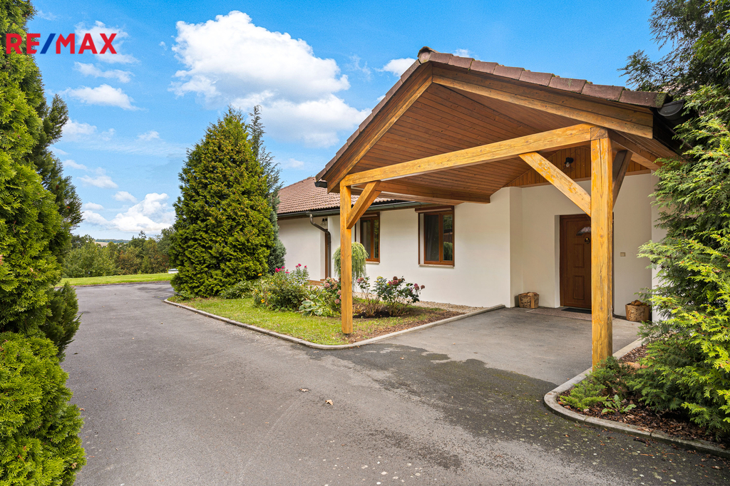 Prodej domu s multifunkční garáží, bydlením a velkým pozemkem – Pavlov u Mohelnice, 10.670 m² Nabízíme k prodeji unikátní nemovitost spojující prostorné zázemí pro podnikání a komfortní část pro bydlení nebo rekreaci. Nachází se v klidné obci Pavlov u Mohelnice, s nádhernými výhledy do přírody a výbornou dostupností na D35 do Olomouce (cca 23 min) a v budoucnu po D35 i směrem na Hradec Králové. Hlavní výhody k podnikání: • Víceúčelová hala (95 m²) s výškou stropu cca 3,3 m – ideální pro např. autoservis, dílnu, sklad, parkování obytného vozu či podnikání • Přímý vstup do haly chodbou z hlavní části domu nebo integrovanými dveřmi ve výsuvných vratech • V hale přípojky na na vodu, elektřinu, odpad • Součástí haly je také technická místnost, WC, sprcha a sauna • Pro kancelář nebo admninistrativní zázemí lze využít jeden z pokojů, který má vlastní vstup i sociální zařízení Bydlení a relaxace: • Obývací pokoj s kuchyní a jídelnou (58 m²) • 2 ložnice, pracovna • 2 koupelny, šatna, 2x WC • Samostatná obytná část pro hosty (vlastní vstup) • Zastřešená terasa s venkovní kuchyní Technické parametry: • Tepelné čerpadlo Daikin 5. generace, klimatizace s funkcí topení • Ohřev vody – zásobník 270 l • Vlastní vrtaná studna (90 m) • Domácí čistička odpadních vod s využitím pro závlahu • Internet zdarma, elektřina – záloha cca 5.500 Kč/měs. • Přístup po asfaltové cestě, vjezd přes elektricky posuvnou bránu Pozemek a okolí: • Celková plocha 10.670 m² • Oplocená zahrada se sadem • Připravené napojení pro karavan/mobilheim (voda, odpad, elektřina) • Občanská vybavenost do 5 km • Možnost výstavby dalších staveb - velká část pozemku je určena k zastavění Tato nemovitost je ideální pro ty, kteří hledají spojení podnikání a bydlení na jednom místě, s možností rozvoje, výbornou dostupností a velkým soukromím. Doporučujeme osobní prohlídku. Součástí nabídky je video a 3D prohlídka.