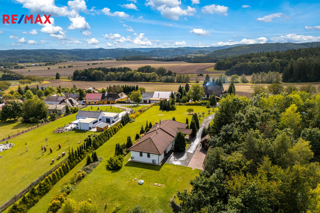 V klidné části obce Pavlov na Olomoucku čeká dům, který nabízí nejen velkou míru soukromí, ale i prostor pro podnikání a další rozvoj. Užitná plocha domu 245 m2 a pozemek o velikosti přes deset a půl tisíce metrů čtverečních otevírají široké možnosti. Zahrada s domem leží v mírném svahu s panoramatickým výhledem do krajiny údolí Zábřežské vrchoviny. Vzrostlé olivovníky, stálezelené dřeviny, kvetoucí okrasné keře, vzrostlé i nově vysazené ovocné stromy dodávají celému místu pocit soukromí a klidu. Část pozemku lze využít k dalšímu zastavění. V budoucnu vám to umožňuje několik variant. Rozdělení a odprodej, kombinaci bydlení a podnikání, využití pozemku pro stavbu rodinného domu pro své potomky. Nebo nemusíte dělat nic a užívat si tohoto krásného místa pro své bydlení, pohodu a klid. V letech 2021, 2022 a 2024 proběhla rozsáhlá rekonstrukce a modernizace exteriéru a interiéru domu - např. zateplení, omítky, odpady, čistička odpadních vod, elektřina, tepelné čerpadlo, klimatizace, kuchyně, interiérové dveře, francouzská okna, venkovní předokenní rolety, fasáda, terénní úpravy, technologie a prvky zařízení domu. Při rekonstrukcích byly použity kvalitní a prémiové materiály i vybavení. Dům má jedno nadzemní podlaží. Hlavní část tvoří prostorný obývací pokoj s jídelnou a kuchyní, ložnice, pracovna, koupelna, samostatné WC, chodba a prostorná šatna. Kuchyňská linka je z dubového dřeva s pracovní deskou z brazilské žuly, interiérové dveře z masivu, vyrobeno na zakázku a designové prvky. Další ložnice s vlastní koupelnou s WC je přístupná z chodby domu nebo také samostatným vchodem a vlastním zádveřím s úložným prostorem – ideální pro hosty, klienty, jako soukromé studio nebo provozovna. V druhé části domu je pro milovníky prostoru velká víceúčelová místnost s širokým využitím (garáž, dílna, posilovna, sklad, herna, studio, ...). Nyní se zde nachází sauna, dále vestavěná místnost jako sklad či sklípek potravin a místnost s technologiemi pro dům (tepelné čerpadlo, zásobník pitné vody, vodárna) a sprchový kout, WC, pračka, sušička, kuchyňský kout s myčkou. V domě jsou použity moderní technologie, které zajišťují pohodlí, komfort a soběstačnost. Tepelné čerpadlo Daikin ve spojení s podlahovým topením a vlastní studna se podílejí na nízkých nákladech provozu domu. Exteriér nabízí samostatnou venkovní dřevěnou stavbu s letní kuchyní a posezením, možnost grilování. Úložné prostory (kůlny), vybudovaná zelená plocha s přípojkami (voda, elektřina, kanalizace), zdroj vody z ČOV k zalévání zahrady, elektrickou posuvnou vjezdovou bránu. Lokalita je praktická i krásná. Do pěti kilometrů leží Mohelnice se školami, sportovišti a obchody, pět minut autem je dálnice D35, půl hodiny cesta do Olomouce. Okolí láká na výlety – hrad Bouzov, zámek Úsov, jezero a rybníky nebo lesy hned za domem. U této nabídky je k dispozici 3D prohlídka i videoprohlídka.