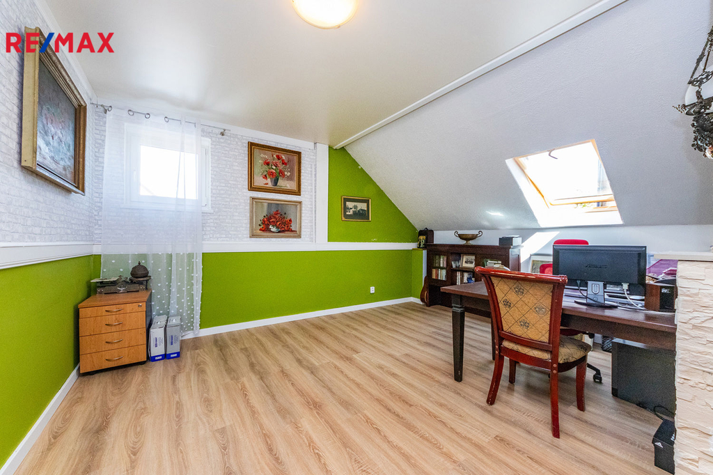 Nabízím k prodeji rodinný dům v osobním vlastnictví, užitná plocha 192 m2, stojí na pozemku o velikosti 327 m2 v ulici Karlovarská, Pavlov. Dům má 2 nadzemní podlaží a byl přistavěn před šesti lety. 1.NP : obývací pokoj s plně vybaveným kuchyňským koutem a výstupem na zahradu, ložnice, koupelna s vanou a WC (podlahové vytápění), chodba a garáž se vstupem do domu. 2.NP: obývací pokoj, 2 ložnice, šatna, koupelna se sprchovým koutem, WC a bidetem. Dům je vhodný pro dvougenerační bydlení. Vytápění domu zajišťuje elektrický kotel, ohřev vody elektrický bojler, okna jsou dřevěná. Na zahradě je k dispozici sauna a zahradní domek. Nemovitost je ve velmi dobrém stavu a připravena k okamžitému nastěhování. Poloha domu zajišťuje klidné bydlení s výbornou dostupností do centra Prahy, vlaková stanice je vzdálena 3 minuty pěší chůzí od domu a za 21 minut se dostanete do stanice metra "A" Veleslavín nebo za 12 minut do Kladna. Na dálnici D6 se dostanete za 7 minut. V bezprostřední blízkosti domu se nachází dětské a fotbalové hřiště a nově vybudovaný tenisový kurt, což činí tuto lokalitu ideální pro rodiny s dětmi. Pro další informace či zájem o prohlídku mě prosím kontaktujte.