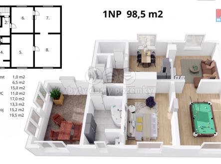 Hledáte domov, kde najdete prostor a soukromí pro každého člena rodiny? Ve Pcherách na vás čeká výjimečný rodinný dům s velkým potenciálem. Významným benefitem je zde fotovoltaika, která významně snižuje náklady na provoz. Užitná plocha je krásných 240 m2. V 1.NP dispozice 3+1 s koupelnou, WC a prosklenou verandou. V 2.NP je terasa (16 m2) s úžasným výhledem a byla zde započata výstavba 3 podkrovních místností, koupelny a WC (možnost dobudovat kuchyňský kout). Toto patro lze upravit na samostatnou jednotku s vlastním vchodem. V suterénu je před dokončením byt o dispozici 1+1 se samostatným vchodem, koupelnou a WC – perfektní pro hosty nebo jako kancelář. Dům je podsklepený (60 m²). Zahrada (424 m2) je oáza klidu a pohody - luxusní bazén se slanou vodou, sauna, kryté posezení, soukromí. Všechny inženýrské sítě zavedeny. Občanská vybavenost je v obci – škola, školka, obchod, lékař, pošta. Výborná dopravní dostupnost – dálnice D7 je 5 minut autem, Kladno 10 minut, Praha cca 25 minut.