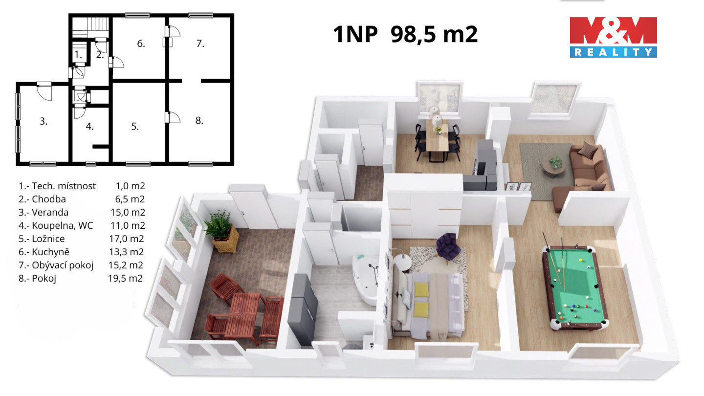 Hledáte domov, kde najdete prostor a soukromí pro každého člena rodiny? Ve Pcherách na vás čeká výjimečný rodinný dům s velkým potenciálem. Významným benefitem je zde fotovoltaika, která významně snižuje náklady na provoz. Užitná plocha je krásných 240 m2. V 1.NP dispozice 3+1 s koupelnou, WC a prosklenou verandou. V 2.NP je terasa (16 m2) s úžasným výhledem a byla zde započata výstavba 3 podkrovních místností, koupelny a WC (možnost dobudovat kuchyňský kout). Toto patro lze upravit na samostatnou jednotku s vlastním vchodem. V suterénu je před dokončením byt o dispozici 1+1 se samostatným vchodem, koupelnou a WC – perfektní pro hosty nebo jako kancelář. Dům je podsklepený (60 m²). Zahrada (424 m2) je oáza klidu a pohody - luxusní bazén se slanou vodou, sauna, kryté posezení, soukromí. Všechny inženýrské sítě zavedeny. Občanská vybavenost je v obci – škola, školka, obchod, lékař, pošta. Výborná dopravní dostupnost – dálnice D7 je 5 minut autem, Kladno 10 minut, Praha cca 25 minut.