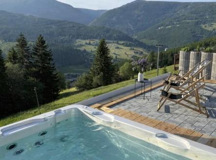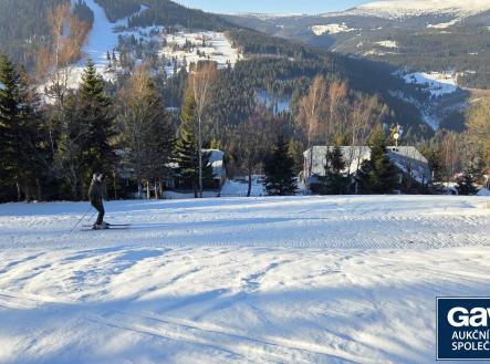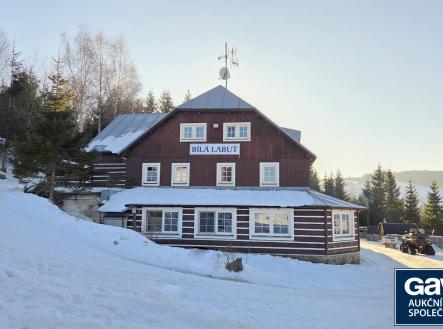 Penzion „ Bílá labuť “ u sjezdovky Javor (ski-in/ski-out), Pec pod Sněžkou, Krkonoše. Penzion Bílá Labuť v plném provozu v lyžařském středisku Pec pod Sněžkou. Penzion se nachází přibližně v polovině sjezdovky Javor s nádherným výhledem na hory i údolí ( v blízké budoucnosti mají být oba vleky na Javor nahrazeny sedačkovou lanovkou). Město Pec pod Sněžkou je jedním z nejznámějších a nejnavštěvovanějších horských středisek zimní i letní rekreace a významným centrem cestovního ruchu. Přímo ve městě se nachází lyžařský areál, který je součástí největšího lyžařského resortu v Česku - Skiresortu Černá hora – Pec. V regionu se nachází nejvyšší hora České republiky Sněžka a Studniční hora. V zimě je doprava k chatám v kopcích zajišťována pásovými taxíky (skútry, traxtery, rolby) , v rámci lyžařského střediska je doprava zajištěna skibusy. Město je sídlem městského úřadu včetně stavebního úřadu, má svou a místní pobočky základních služeb (Policie, Horská služba). Vzdělávání a péče o děti je zajištěna základní školou a mateřskou školou. Obchody, stravování a služby: město nabízí potravinové obchody, restaurace, kavárny a další doplňkové služby pro obyvatele i turisty. V turistické infrastruktuře je rozsáhlá hotelová a ubytovací nabídka, stezky a zařízení pro sport a rekreaci včetně lyžařského areálu a turistických tras. Výborné autobusové spojení z Prahy bez nutnosti přestupů. Dále bohaté regionální autobusové linky z Trutnova či okolních měst. Z Pece pod Sněžkou vede kabinková lanovka na Sněžku. Penzion má v současnosti 19 pokojů pro hosty s vlastním soc. zázemím (kapacita 55 hostů), byt pro majitele, 3 pokoje pro personál, restauraci a vybavenou kuchyň, samostatně stojící Ski bufet u sjezdovky, hernu, saunu, venkovní vířivku s nádherným výhledem, lyžárnu a samozřejmě dostatečné technické zázemí. Třípodlažní penzion byl postaven ve 30. letech 20. století a prošel řadou rekonstrukcí. Poslední velká rekonstrukce proběhla v r. 2004, kdy byl rozšířen o přístavby vč. propojovacího koridoru, bylo vybudováno nové schodiště a do pokojů byly zabudovány koupelny s WC. Druhá hlavní budova byla postavena okolo r .1984 a také prošla rekonstrukcemi, poslední v r. 1995. Vytápění je centrální plynové. Areál staveb penzionu je napojen na veškeré veřejné inženýrské sítě vyjma vodovodu (není v oblasti), který je již historicky řešen odběrem podzemních vod na základě povolení s nakládáním s vodami. Celková výměra pozemků je 4.314 m2. Pozemky spolu se stavbami tvoří jednotný funkční celek.