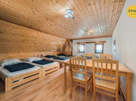 Nabízíme k prodeji ve výhradním zastoupení majitele krásnou rekreační chatu Elišku v Krkonoších. Chalupa je zčásti roubená a zčásti zděná, aktuálně je zde provozován penzion s kapacitou cca 15 osob. Nemovitost se nachází v atraktivní lokalitě mezi Velkou Úpou a Pecí pod Sněžkou. Objekt prošel rozsáhlou rekonstrukcí. V roce 2010 byla opravena fasáda, vnitřní omítky, rozvody vody, elektřiny a kanalizace. V roce 2020 byly opraveny oba komíny, vyměněna okna, zrekonstruováno vnitřní schodiště a interiéry, vyměněno interiérové vybavení. Dispoziční řešení: Přízemí: - Chodba - Společenská místnost - Plně vybavená kuchyň s jídelnou (myčka, elektrický sporák, dvě lednice, mikrovlnná trouba) - 2x koupelna - 2x WC - Vstupní hala s krbovými kamny - 1 pokoj pro 2 osoby - 1 pokoj pro 4 osoby . V podkroví jsou dva pokoje, jeden pro 4 a druhý pro 6 osob.