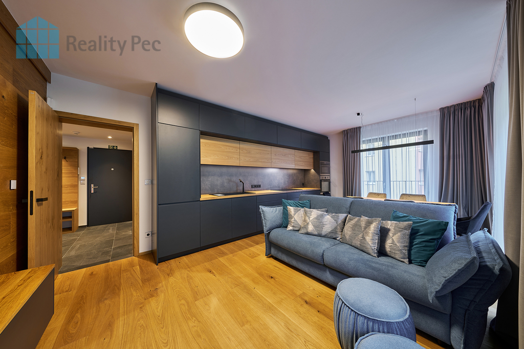 Nabízíme k prodeji exkluzivní, kompletně vybavený luxusní byt 3 + kk, nacházející se v obci Pec pod Sněžkou - Velká Úpa, v srdci malebné krajiny pod Sněžkou. Tato jedinečná nemovitost nabízí ideální kombinaci pohodlí pro rekreaci i trvalé bydlení a je skvělou příležitostí pro ty, kteří hledají klidné místo přesto v centru dění. Byt se nachází ve třetím patře pětipodlažní cihlové budovy, která byla postavena s důrazem na kvalitu a komfort. Celková plocha bytové jednotky činí 75,3 m², což zaručuje dostatek prostoru pro pohodlný život. Interiér bytu byl navržen tak, aby splňoval i ty nejnáročnější požadavky moderního bydlení. Elegantní designový nábytek a špičkové vybavení podtrhují exkluzivní charakter této nemovitosti. Mezi hlavní přednosti patří skvělá lokalita, která nabízí snadný přístup k zastávce skibusu, což dovoluje obyvatelům snadno si užívat zimní radovánky na okolních svazích. K dispozici je také skibox s vysoušečem bot, který ocení zejména milovníci zimních sportů, a zajistí pohodlnou přípravu na výlety do zasněžených hor. Dalším významným benefitem je zastřešené parkovací stání, které poskytuje bezpečné místo pro vaše vozidlo. Tento prvek praktického komfortu je v této lokalitě velmi žádaný a přidává na atraktivitě celé nemovitosti. V budově není zapomenuto ani na moderní výtah, který usnadňuje přístup do jednotlivých podlaží a je ideální pro rodiny nebo starší obyvatele. Obec Pec pod Sněžkou se vyznačuje nejen nádhernými přírodními scenériemi, ale také širokými možnostmi pro volnočasové aktivity, včetně turistických a cyklistických tras, a nabízí kvalitní občanskou vybavenost, která je pro pohodlné životní styl nezbytná. Tato luxusní nemovitost je ideální volbou pro ty, kteří hledají kombinaci klidného života v přírodě s komfortem moderního bydlení. V případě zájmu o prohlídku nás neváhejte kontaktovat.