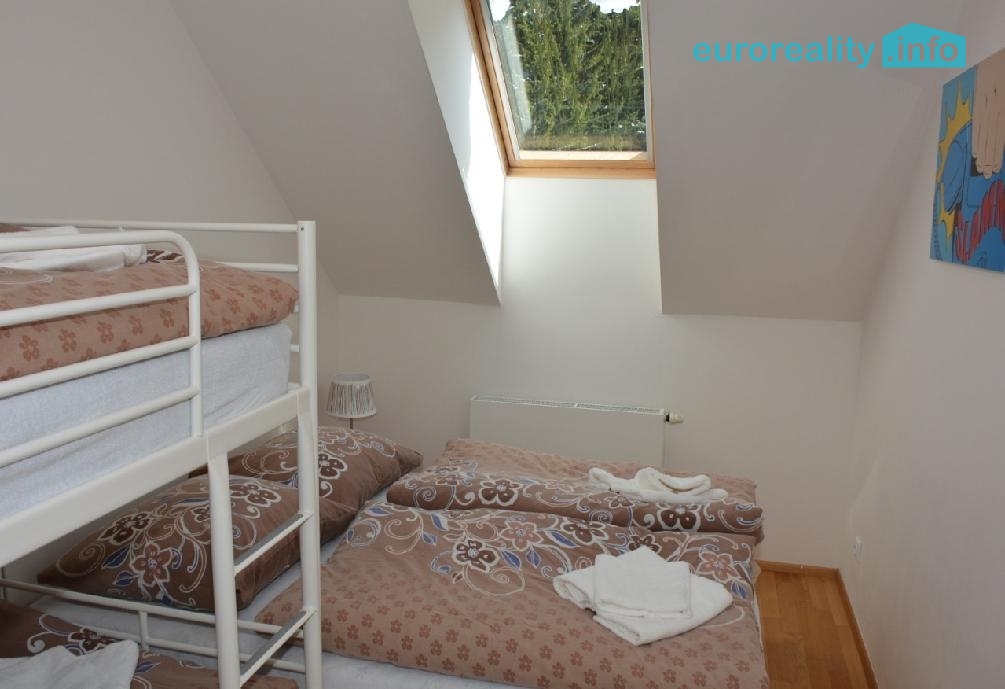 Nabízíme k pronájmu apartmán 2+kk o CP 35 m2 s garážovým stáním v Peci pod Sněžkou. Apartmán je mezonetový, podkrovní, situovaný v posledních dvou patrech apartmánového domu Javor. V přízemí apartmánu se nachází obývací pokoj s kuchyňským koutem (sklokeramická deska, myčka nádobí, lednice s mrazákem, parní konvektomat), sedací soupravou, jídelním koutem a televizí, dále pak samostatné WC, koupelna se sprchovým koutem, umyvadlem, podlahovým topením a otopným tělesem (žebřík). V horním patře apartmánu je ložnice se čtyřmi lůžky, patra jsou spojená dřevěným schodištěm, pod kterým je vestavěná skříň s velkým úložným prostorem. Apartmán má vlastní elektrokotel pro vytápění a bojler pro ohřev teplé vody. Součástí pronájmu je samostatný uzamykatelný box v lyžárně a kryté garážové stání v podzemní garáži pod budovou. Internet je zdarma v celém objektu. Apartmán se nachází přímo u sjezdovky Javor a dojedete až k němu autem i v zimním období. Na lyžích se dostanete od apartmánu na sjezdovku i ze sjezdovky zpět před dům. Více info v RK.