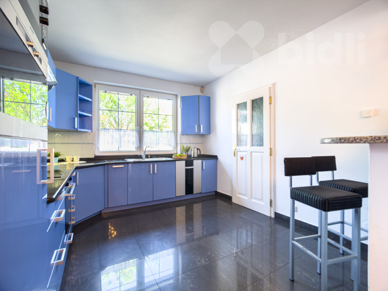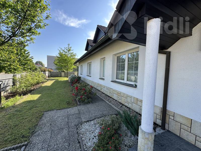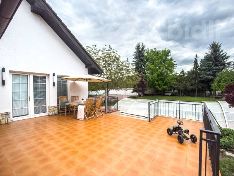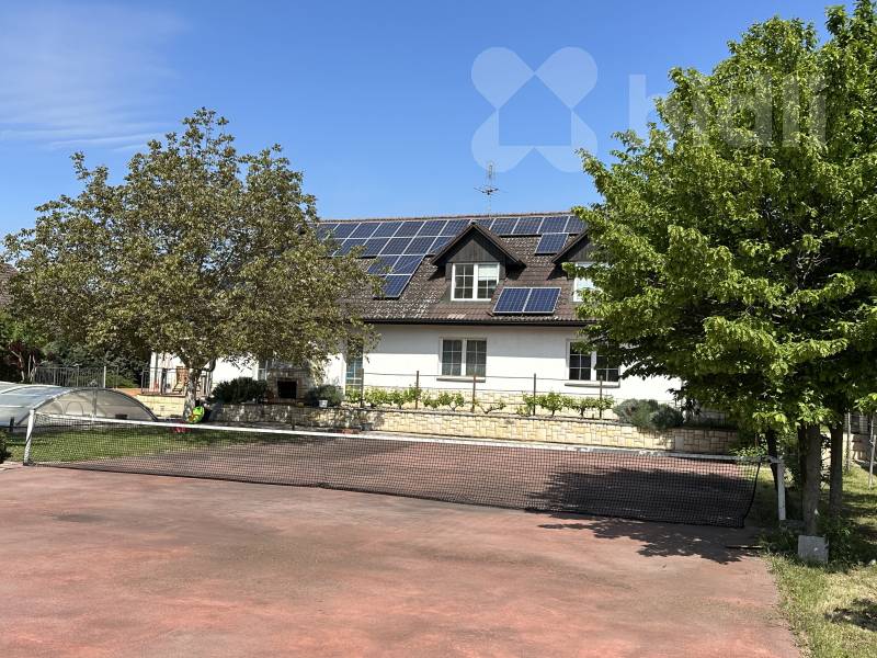 Nabízím k prodeji výjimečný rodinný dům s dispozicí 9+1 a užitnou plochou 353 m2, situovaný na prostorném a pečlivě udržovaném pozemku o celkové výměř e 1 746 m2, v klidné části města Pečky, okr. Kolín. Dominantou domu je velkorysý obývací pokoj s krbem a otevřeným stropem, který celému prostoru dodává jedinečnou vzdušnost a dostatek přirozeného světla. Na obývací část plynule navazuje moderně řešená kuchyň s kvalitními vestavěnými spotřebiči a praktickou samostatnou spižírnou. V přízemí domu se dále nachází ložnice, dva dětské pokoje, pracovna a prostorná koupelna s vanou, sprchovým koutem a toaletou. Dřevěné schodiště vás zavede do prvního patra, kde naleznete další ložnici, tři samostatné pokoje, koupelnu se sprchovým koutem, WC a technickou místnost s technologií k fotovoltaické elektrárně. Na pozemku najdeme garáž pro dvě auta, terasu s posezením, venkovní bazén, tenisový kurt, saunu a zahradní domek na nářadí. Celý pozemek poskytuje dokonalé zázemí pro odpočinek, rodinné i společenské aktivity. Dům je situován v atraktivní a klidné lokalitě s výbornou dostupností do centra města Pečky, které nabízí veškerou občanskou vybavenost (škola, školka, lékař, obchody, vlakové spojení). Tento dům představuje ideální volbu pro velkou rodinu nebo pro ty, kteří hledají komfortní a reprezentativní bydlení v příjemném prostředí s dostatkem soukromí. Veškeré další informace Vám rádi sdělíme osobně při prohlídce domu.