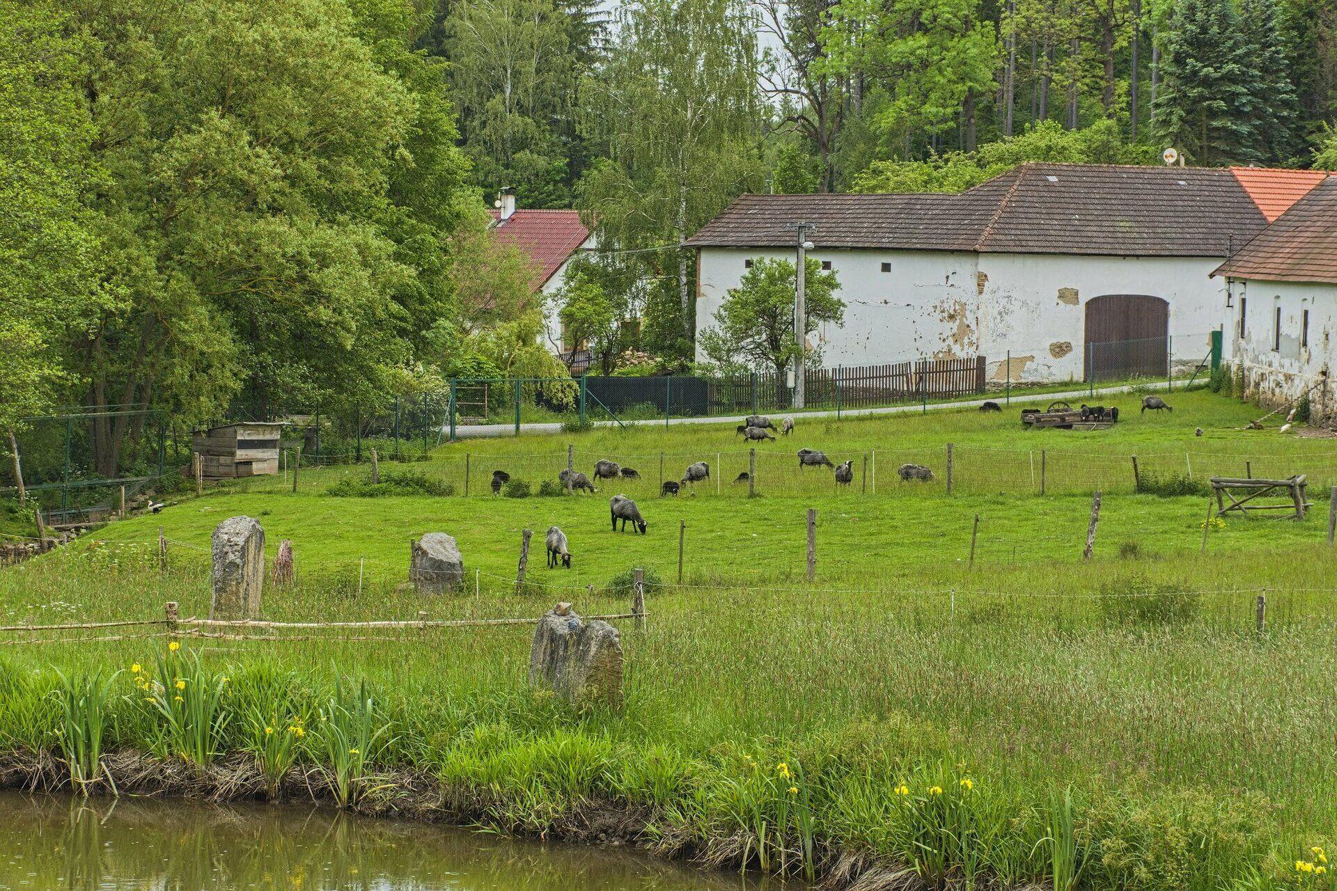Prodáme rozlehlý a oplocený areál Radňovského mlýna s rybníkem Hájek, sádkami a přilehlým lesním pozemkem. Celková prodávaná výměra pozemků činí 83.424 m2. Stručný popis celého areálu: - areál Radňovského mlýna se nachází na adrese Radňov 16, 393 01 Pelhřimov – Radňov, - areál je tvořen souborem budov historického mlýna, rybníkem Hájek, sádkami, zahradami a loukami a dalšími budovami v okrajové části areálu, - budovy udržované a užívané, ale před celkovou rekonstrukcí - na rekonstrukci mlýna je zpracovaná dokumentace a vydáno stavební povolení do 31.12.2030, - majitel v areálu chová ovce, slepice, husy a kachny, - prakticky celá výměra areálu mlýna je oplocena a uzavřena (část zděným plotem s podezdívkou a pilíři z lomového kamene a dřevěnými výplněmi a část strojovým pletivem s potahem PVC), - výměra areálu mlýna činí 49.903 m2; mimo oplocenou výměru areálu (hned za veřejnou komunikací) s areálem sousedí lesní pozemky o výměře 33.521 m2. Historii mlýna, jeho popis, popis rybníka Hájek, mnoho fotografií a stavebních výkresů naleznete v prezentaci na našich internetových stránkách - viz kontakty.
