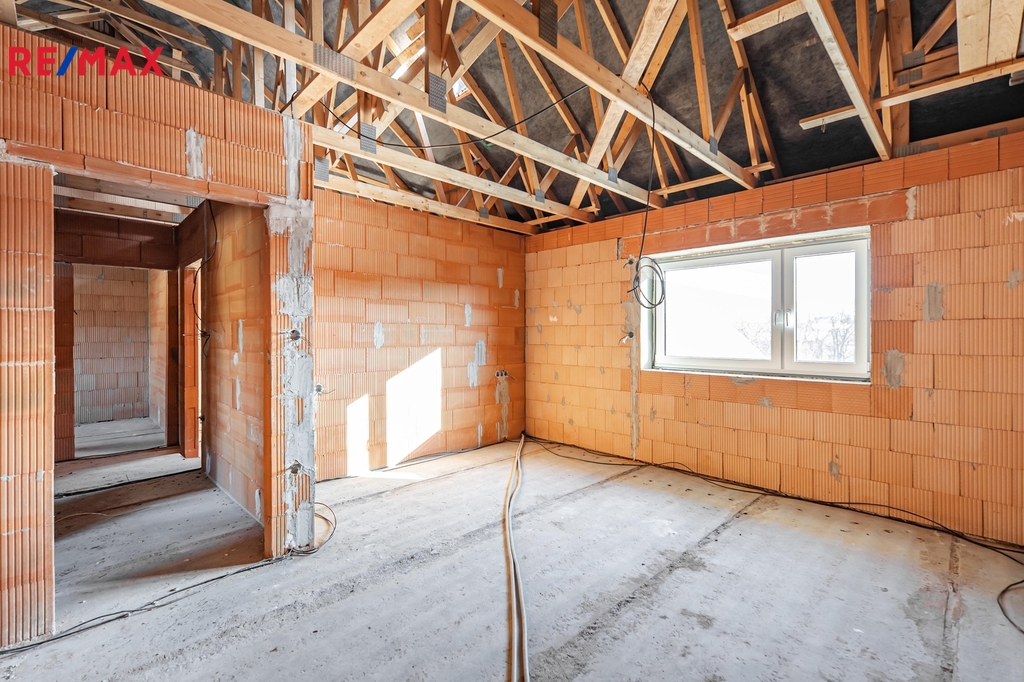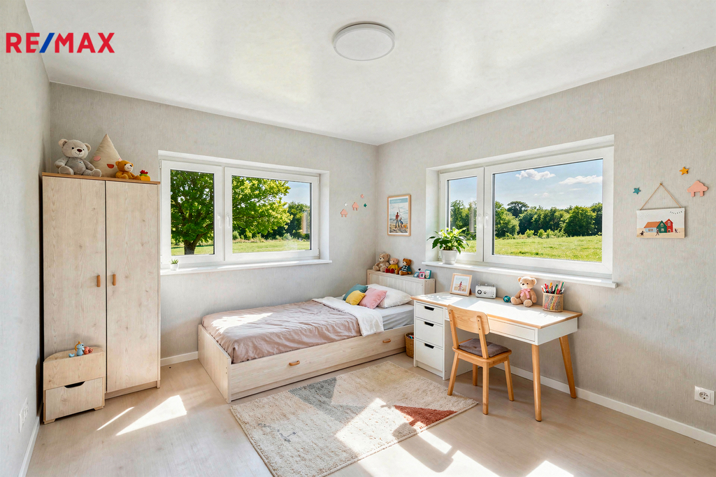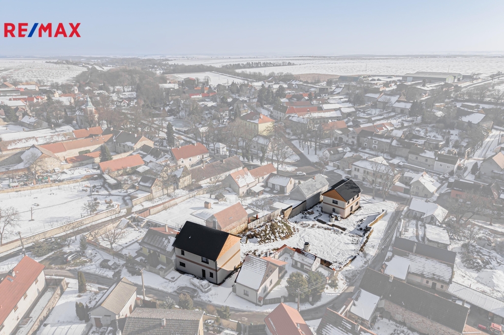 Dovoluji si Vám nabídnout novostavbu rodinného domu o dispozici 4+kk v obci Černochov u Peruce. Rodinný dům s užitnou plochou 147,29 m² je nabízen jako kompletně dokončený, tedy včetně podlahových krytin, tepelného čerpadla, bojleru, podlahového vytápění, interiérových dveří a plně vybavené koupelny. Kuchyňská linka není součástí ceny a je ponechána na preferencích budoucího majitele. Dům je rovněž připraven na instalaci krbových kamen. Jedná se o cihlovou stavbu s dřevěnými prvky. Nemovitost je napojena na vodovodní řád a disponuje vlastní ČOV. K domu náleží pozemek o velikosti 771 m². Parkování je zajištěno přímo u domu. Lokalita nabízí velmi dobrou dopravní dostupnost – autobusová zastávka je vzdálena pouhých 100 metrů. V blízkém okolí se nachází obce a města Peruc, Louny, Lovosice a Litoměřice, přičemž dojezdová vzdálenost do Prahy činí cca 45 minut. Dokončení stavby je plánováno na léto 2026. Rád Vás nemovitostí osobně provedu, těším se na setkání při prohlídce.