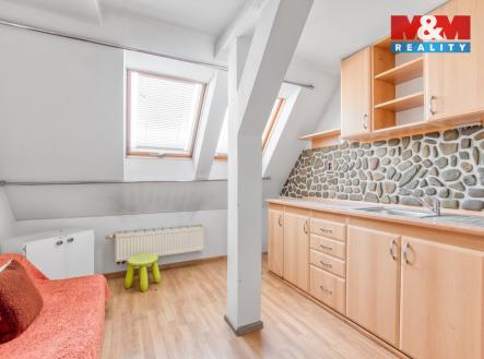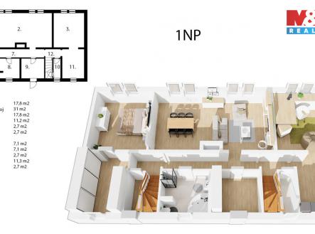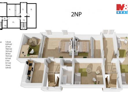 Dnes bych Vám ráda představila prostorný rodinný dům o velikosti 7+2 ,který lze využít pro bydlení jedné rodiny nebo jako dvougenerační. V přízemí domu je kuchyň se vstupem do pokoje a dominantou je prostorný obývací pokoj s krbem. Druhá část obýváku může sloužit jako jídelna, dále je zde ložnice s navazující šatnou, koupelna, WC. V prvním patře domu jsou dva pokoje a možnost samostatné bytové jednotky, kde je kuchyň, dva pokoje, koupelna a WC. Je zde i prostorná půda, kterou lze využít pro další pokoje. Vytápění domu je řešeno tepelným čerpadlem a krbem s vodní vložkou. Dům prošel v roce 2010 rekonstrukcí-elektřina, voda a odpady, výměna oken, zateplení domu (chybí fasádní omítka) a jelikož už nějaký čas uběhl, jsou zapotřebí nějaké menší úpravy. Na zahradě, která je pečlivě upravena, se nachází altán s krbem, dřevník, kotec pro psa, dílna, zámková dlažba pro stání dvou aut a jezírko. Bonusem domu je garáž pro dvě auta. Zavolejte si o informace a termín prohlídky. Těším se!
