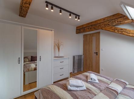 První etapa pěti apartmánů v prodeji. Nabízíme prodej vybaveného apartmánového bytu 2+kk ve zděném bytovém domě o 12 bytech v malé šumavské osadě Jiřičná u Petrovic, která je téměř nedotčena turismem. Osada leží nedaleko Sušice v údolí u potoka Volšovky, obklopena šumavskými lesy a loukami v zajímavé kombinaci v dosažitelností města s přírodou. Apartmány v Rezidenci Jiřičná jsou ideální volbou i pro ty, kteří si chtějí užívat dovolenou ve vlastním apartmánu na Šumavě, nebo pro ty co využijí apartmán i k pronájmu s cílem generovat pasivní příjem. Jednotlivé apartmány jsou zcela nově kompletně zrekonstruovány (vystavěny) nové příčky, zateplení včetně podlah, rozvody elektřiny, vody, - vše se samostatnými měřiči atd. Apartmán č. 2. o podlahové ploše 48,3 m2 je kompletně moderně a vkusně vybavený jak elektrospotřebiči, tak nábytkem. Vnitřní dispozice 2+kk v 1. NP: vstupní předsíň, kuchyňský kout - kuchyňská linka zn. Oresi ( s el. horkovzdušnou troubou s indukční deskou, mikrovlnnou troubou, lednicí s mrazákem zn. Mora). Jídelní koutek s obývacím prostorem včetně nábytku a TV ; ložnice. Koupelna (se sprchovým koutem, umyvadlem, topným žebříkem a připojením k pračce, baterie – Grohe, sanita - Geberit), samostatné WC. V rámci rekonstrukce bylo provedeno zaizolování stropů, položeny protihlukové podlahy, plovoucí podlaha zn. Quick – Step a protihlukové stěny mezi apartmány, okna dřevěná s trojskly. Vytápění je řešeno klimatizací Haier - ovládanou tel., vjezdová brána ovládaná tel. a kódovým systémem, samostatné připojení wifi, kamerový systém. K bytu náleží vlastní venkovní prostor k posezením, kój (5m2), jedno parkovací stání u domu a společné venkovní prostory k odpočinku. Voda čerpána z vrtané studny, odpad řešen ČOV. V rezidenci je dále k dispozici využití sauny a fitness. Měsíční náklady spojené s užíváním bytu FO: bude stanoven dle dohody majitelů bytových apartmánů + zálohy na energie (vodné, stočné, teplo atd) + el.; Základní občanskou vybavenost najdete v nejbližší obci Petrovice cca 1km, veškerou občanskou vybavenost naleznete v Sušici cca 7km, včetně krytého i venkovního bazénu, zimního i letního stadionu, kina, restaurací a dalšího sportovního a kulturního vyžití. Celoročně můžete navštívit zajímavá místa Šumavy, využít cyklotras, běžkařských tras, kterými je Šumava protkána a v zimě si zalyžovat v lyžařských střediscích: Hartmanice (5km), Kašperské Hory (20 km), Špičák (29 km), Velký Javor (40 km), Zadov (39 km). Německo (30km(, Klatovy (27km).