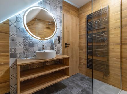 Rezidence Jiříčná – prodej nově vystavených apartmánů v zrekonstruované budově na Šumavě. První etapa pěti apartmánů v prodeji. Nabízíme prodej plně vybaveného apartmánového bytu 2+kk 47m2 včetně balkonu s posezením 6m2, sklepní kóje 5m2 a parkovacího místa ve zděném bytovém domě v malé šumavské osadě Jiřičná u Sušice, která je téměř nedotčena turismem. Osada leží nedaleko Sušice v údolí u potoka Volšovky, obklopena šumavskými lesy a loukami v zajímavé kombinaci v dosažitelností města s přírodou. Apartmány v Rezidenci Jiřičná jsou ideální volbou i pro ty, kteří si chtějí užívat dovolenou ve vlastním apartmánu na Šumavě, nebo pro ty co využijí apartmán i k pronájmu s cílem generovat pasivní příjem. Jednotlivé apartmány jsou zcela nově kompletně zrekonstruovány (vystavěny) nové příčky, zateplení včetně podlah, rozvody elektřiny, vody, - vše se samostatnými měřiči atd. Apartmán č. 1. o podlahové ploše 47 m2 s celkovou plochou 58m2 je kompletně moderně a vkusně vybavený jak elektrospotřebiči, tak nábytkem. Vnitřní dispozice 2+kk v 1. NP: vstupní předsíň, kuchyňský kout - kuchyňská linka (zn. Oresi s el. horkovzdušnou troubou s indukční deskou, mikrovlnnou troubou, lednicí s mrazákem zn. Mora). Jídelní koutek s obývacím prostorem včetně nábytku a TV ; ložnice. Koupelna (se sprchovým koutem, umyvadlem, topným žebříkem a připojením k pračce, baterie – Grohe, sanita - Geberit), samostatné WC. V rámci rekonstrukce bylo provedeno zaizolování stropů, položeny protihlukové podlahy, plovoucí podlaha zn. Quick – Step a protihlukové stěny mezi apartmány, okna dřevěná s dvojskly. Vytápění je řešeno klimatizací Haier - ovládanou tel., vjezdová brána ovládaná tel. a kódovým systémem, samostatné připojení wifi, kamerový systém v celém komplexu. K bytu náleží kój (5m2), jedno parkovací stání u domu a společné venkovní prostory k odpočinku. Voda čerpána z vrtané studny, odpad řešen ČOV. V rezidenci je dále k dispozici využití sauny a fitness. Měsíční náklady spojené s užíváním bytu FO: bude stanoven dle dohody ostatních majitelů bytových apartmánů + zálohy na energie (vodné, stočné, teplo atd) + el.; Základní občanskou vybavenost najdete v nejbližší obci Petrovice cca 1km, veškerou občanskou vybavenost naleznete v Sušici cca 7km, včetně krytého i venkovního bazénu, zimního i letního stadionu, kina, restaurací a dalšího sportovního a kulturního vyžití. Celoročně můžete navštívit zajímavá místa Šumavy, využít cyklotras, běžkařských tras, kterými je Šumava protkána a v zimě si zalyžovat v lyžařských střediscích: Hartmanice (5km), Kašperské Hory (20 km), Špičák (29 km), Velký Javor (40 km), Zadov (39 km). Německo (30km(, Klatovy (27km).
