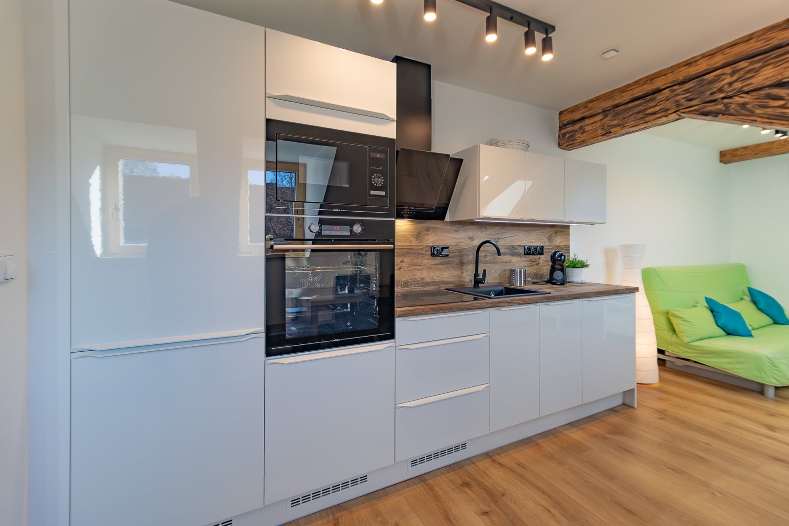 Prodej nového vybaveného apartmánu č. 4 s vlastním parkovacím stáním a zahrádkou v Jiřičné, Šumava