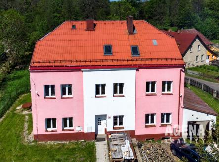 Předmětem prodeje je bytový dům (kolaudace 12/2015) v tiché obci Krásný les v Krušných horách, 7km od lyžařského střediska Adolfov, 15 min. od Ústí nad Labem a 30 min. od Drážďan. Budova je po kompletní rekonstrukci z roku 2015, zahrnující výměnu oken, celkové zateplení, veškeré horizontální i vertikální rozvody. V roce 2022 byly vyměněny podlahové krytiny, opraveny vnitřní omítky a bylo vymalováno. Na podzim v roce 2022 byl instalován nový zplynovací, ekologický a velmi úsporný kotel ATMOS 45Kwh tř. 5 na uhlí či dřevo. Budova má vlastní ČOV. Voda je čerpána z historické studny a následně upravena infralampou. Vnější omítka je částečně oprýskaná po vichřici (pouze nátěr a lokální menší poškození). Dům má tři nadzemní a jedno podzemní podlaží. V podzemním podlaží je technologické zázemí (kotel). V přízemí se nacházejí bytové jednotky 2+1, 1+1 a ateliér, včetně koupelny a kuchyně. Ve druhém nadzemním podlaží je velká jednotka 3+1, dále pak garsonka. Ve třetím nadzemním podlaží je atypický byt 5+1 s prvky půdních vestaveb. Každá bytová jednotka má svůj boiler na ohřev vody a vlastní elektroměr. Tato nemovitost je vhodná jak pro rodinné bydlení, tak i pro provozování penzionu, či celoročního ubytování. Prohlídku doporučujeme. V presentaci jsou použity visualizace případné podoby po částečné opravě fasády.