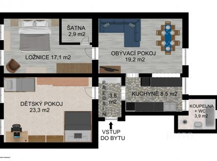 V zastoupení majitele nabízíme k prodeji byt o dispozičním řešení 3+kk na ul. Jeronýmova v Písku. Byt se nachází ve 2. NP domu. Před vstupem do bytu je praktická spižírna. Při vstupu do bytu je předsíň, ve které je místo na botník a předsíňový nábytek. Po pravé straně bytu s orientací do zahrady je kuchyňský kout a obývací pokoj. Tento útulný, praktický prostor vznikl přestavbou původní dispozice 2+1. Kuchyňský kout je od jídelní části a obývacího pokoje oddělena příčkou s průhledem, což dělá prostor vzdušným a světlým. Koupelna s oknem je s vanou a toaletou dohromady. V koupelně je tři roky starý plynový kotel, který zajišťuje vytápění bytu a ohřev vody. Vytápění bytu lze řešit i krbovou vložkou v obývací části. Dvě ložnice o výměře 23,3 m² a 17,1 m² jsou orientovány do ulice Jeronýmova. Menší ložnice má vestavěnou, velmi praktickou šatnu o výměře 2,9 m². Byt byl v roce 2001 celkově rekonstruován vč. rozvodů vody a elektřiny (měď). Okna jsou plastová z roku 2007, střecha je nová, její výměna proběhla v roce 2010 (vč. latí a parofolie). Fasáda do zahrady je zateplena v roce 2012. Čelní fasáda domu byla provedena v roce 2017. Vodovodní přípojka vč. rozvodů po domě je z roku 2016. K bytu náleží volný půdní prostor, který nabízí možnost půdní vestavby. Díky tomu lze byt rozšířit například o mezonetové patro či další pokoj a zvýšit tak komfort i hodnotu nemovitosti. Dále podíl na společné zahradě, čistý, suchý sklep. Na dvorku je k bytu dřevník a budova bývalé prádelny, která slouží pro uložení zahradního nářadí. Společná zahrada je velmi pečlivě udržovaná všemi spoluvlastníky domu (v domě jsou pouze 4 jednotky). Je zde gril a posezení. Zahrada je osázena několika ovocnými stromy. Celková atmosféra společných prostor domu i bytu je velmi příjemná. Doporučujeme Vám shlédnout video, které je součástí inzerátu a projít si fotogalerii vč. 2D a 3D půdorysů, ve kterých jsou uvedeny jednotlivé výměry místností.