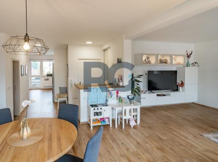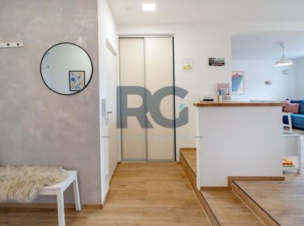 Exkluzivně nabízíme k prodeji nadstandardní mezonetový byt o dispozici 3+1 s balkonem. Byt o výměře podlahové plochy 134 m2 nabízí v dolní části světlý obývací prostor spojený s jídelnou, plně vybavenou kuchyni, předsíň a samostatnou toaletu; v patře se nachází dvě ložnice a koupelna s toaletou. Z obývacího prostoru se vstupuje na prosluněný balkon situovaný do zahrady domu. Kuchyňská linka disponuje spotřebiči - varná deska, digestoř, trouba, mikrovlnná trouba, myčka. Koupelna je spojená s toaletou a je zde umístěný sprchový kout, vana, dvě umyvadla. Zázemí pro pračku a sušičku je taktéž v koupelně. V bytě se nachází dva úložné prostory o výměře 0,98m2 a 1,64 m2. V dolní části bytu jsou okna opatřena žaluziemi, všechna okna mají zatemňující rolety. K bytu náleží zděný sklep a podíl na společných částech domu a pozemku. Pro více informací a sjednání prohlídky mě neváhejte kontaktovat.