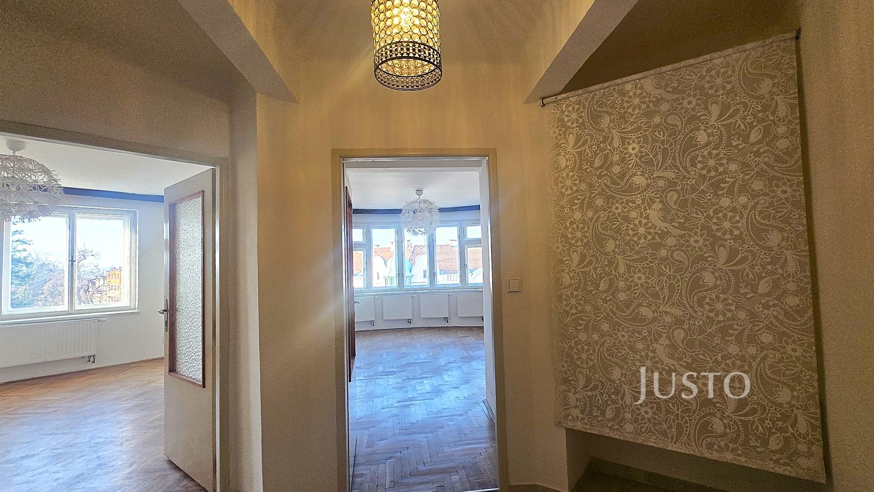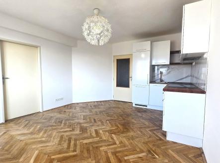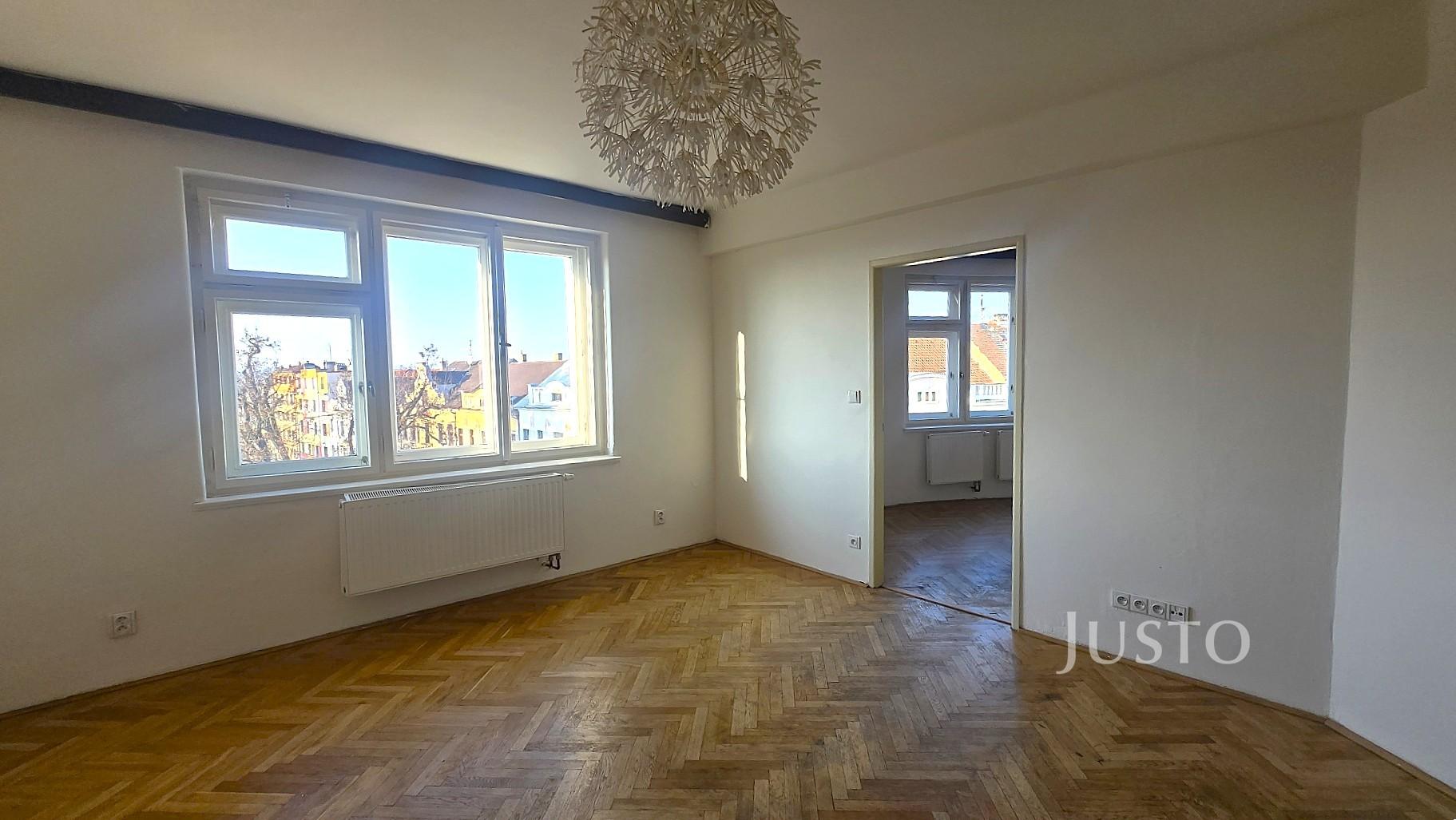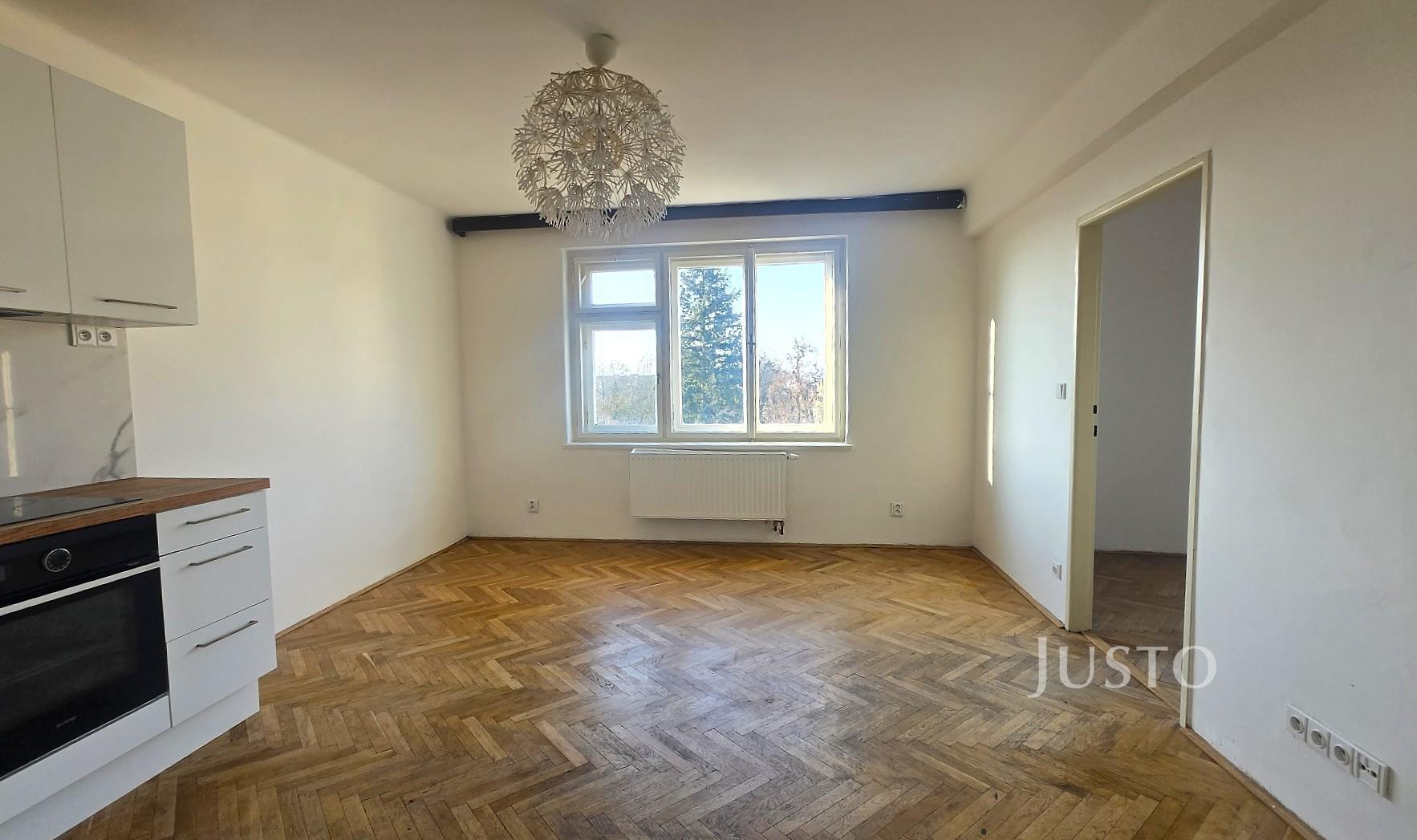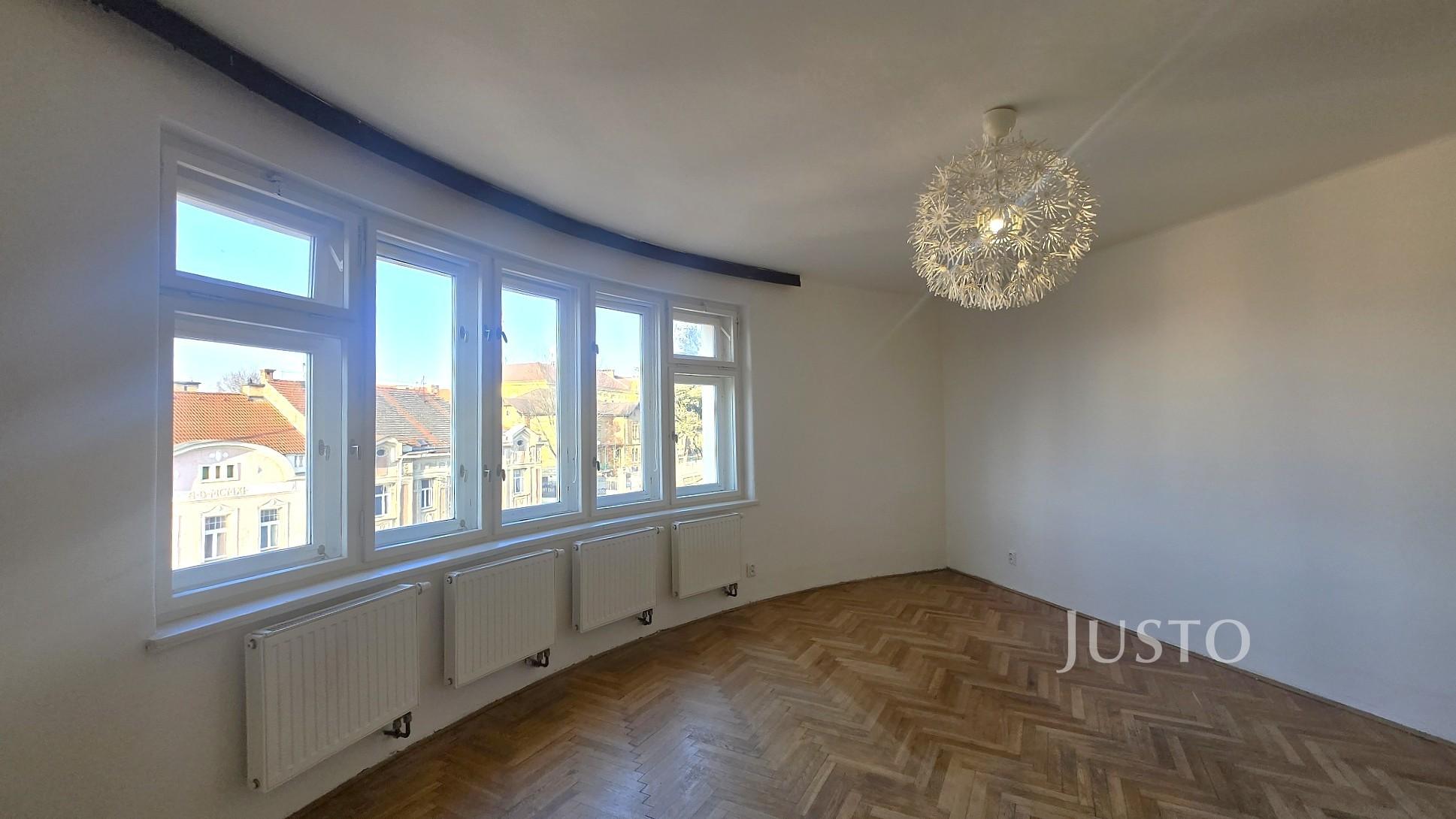 V zastoupení majitele nabízíme k pronájmu byt o dispozici 2+kk a celkové ploše 50 m², umístěný ve 3. nadzemním podlaží bytového domu bez výtahu. Byt je ve velmi dobrém stavu a nabízí prakticky řešený úložný prostor včetně komory/šatny. Součástí vybavení je kuchyňská linka se spotřebiči. Byt je zajímavě dispozičně řešen v půlkruhovém domě, což mu dodává jedinečný charakter a nabízí krásný výhled do okolí. Koupelna je vybavena vanou a umyvadlem, toaleta je samostatná. Vytápění bytu zajišťuje elektrokotel. Podlahy jsou parketové. V bytě jsou zachovány původní prvorepublikové interiérové prvky, jako jsou dveře, okna a původní kování dveří i oken. Veškerá občanská vybavenost v docházkové vzdálenosti – škola, školka, obchody, restaurace. Parkování je možné v okolí domu. Během 10 minut pěší chůze se dostanete jak do lesa na Americe, tak i do centra města na náměstí. Byt je ihned k nastěhování