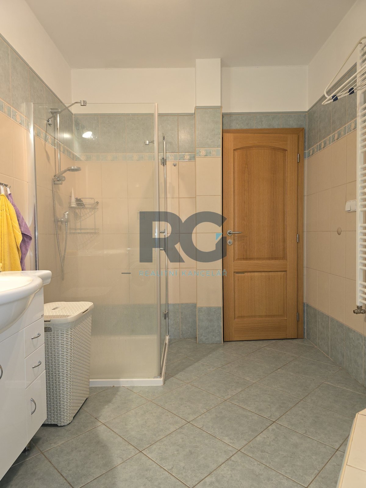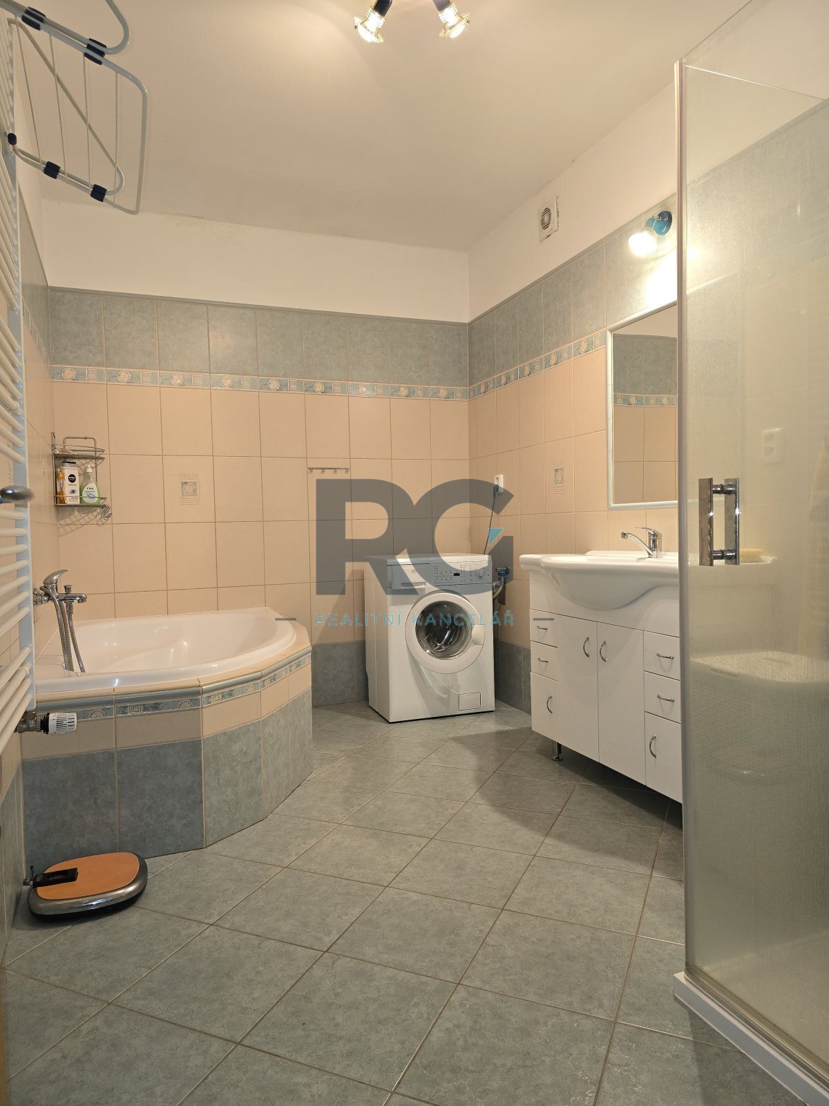V zastoupení majitelů nabízíme k pronájmu tento prostorný, kompletně zařízený byt o dispozici 4+1 a výměře podlahové plochy 111,07 m2. Byt se nachází ve 3. patře cihlového bytového domu bez výtahu v lokalitě "Svatý Václav", v ulici Vojenova v Písku. Příslušenstvím bytu je velká terasa o výměře 19,81 m2, přístupná z obývacího pokoje, nabízející klidné posezení s nádherným výhledem na město Písek. Z ložnice je pak přístupný malý balkon o výměře 2,71 m2. Byt je vybaven kuchyňskou linkou včetně všech spotřebičů (trouba, varná deska, digestoř, lednice s mrazákem, myčka nádobí, mikrovlnná trouba). V koupelně je rohová vana i sprchový kout, k dispozici je pračka. Toaleta je samostatná. Celý byt je vybaven nábytkem. Podlahy v celém bytě je plovoucí, v koupelně, kuchyni a chodbě je dlažba. Vytápění včetně ohřevu vody je zajištěno vlastním plynovým kondenzačním kotlem. Dům postavený v roce 2003 se nachází v klidné okrajové části města Písku. Nyní dojde k zateplení celého domu, v bytě k výměně oken za nová, budou také upraveny terasy a balkony. Okolo domu je dostatek parkovacích míst, v těsné blízkosti domu je dětské hřiště, nedaleko je pak samoobsluha, park i autobusová zastávka. V případě potřeby je možné si k bytu pronajmout garáž přímo v domě.