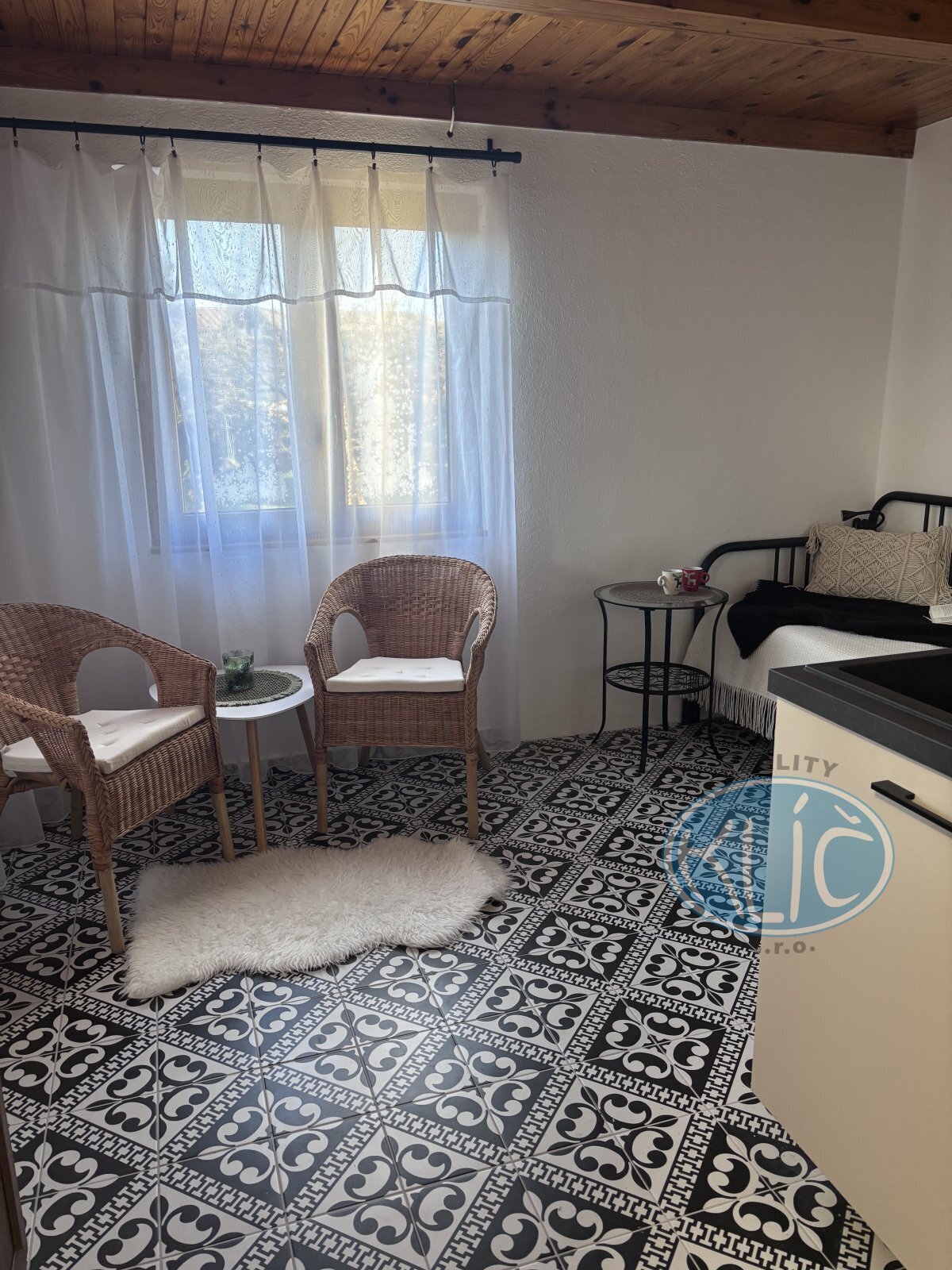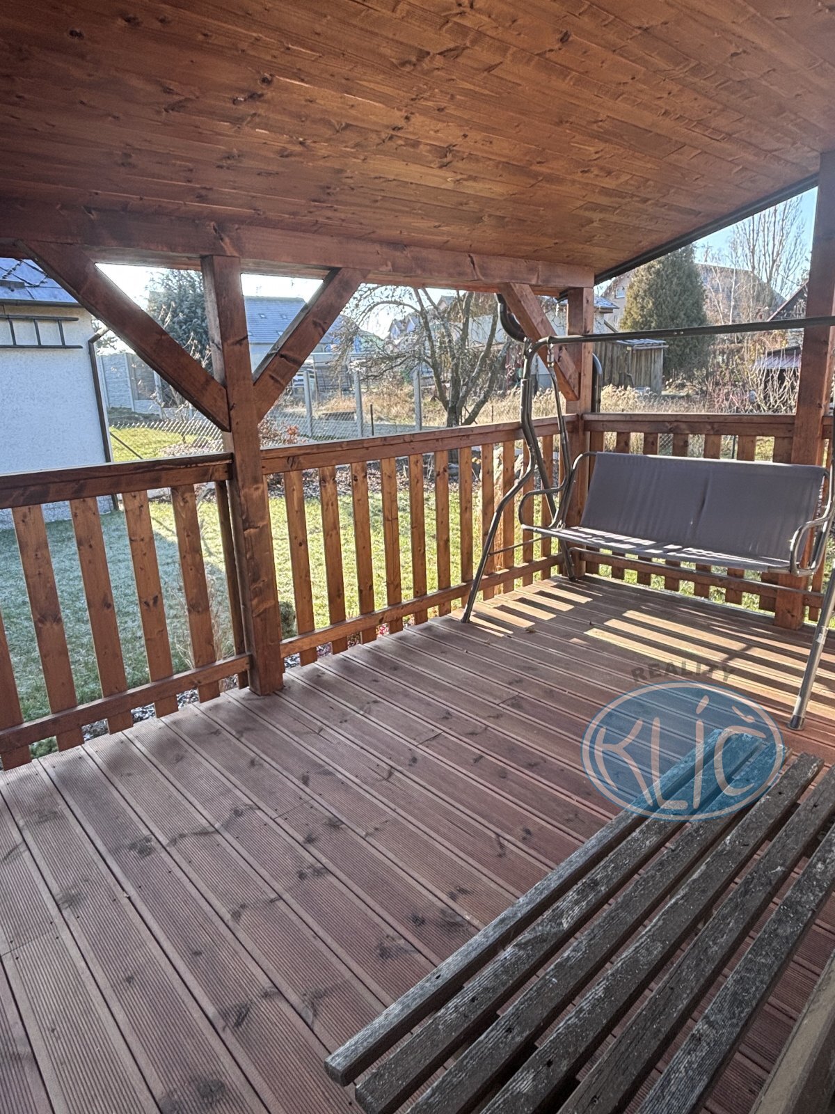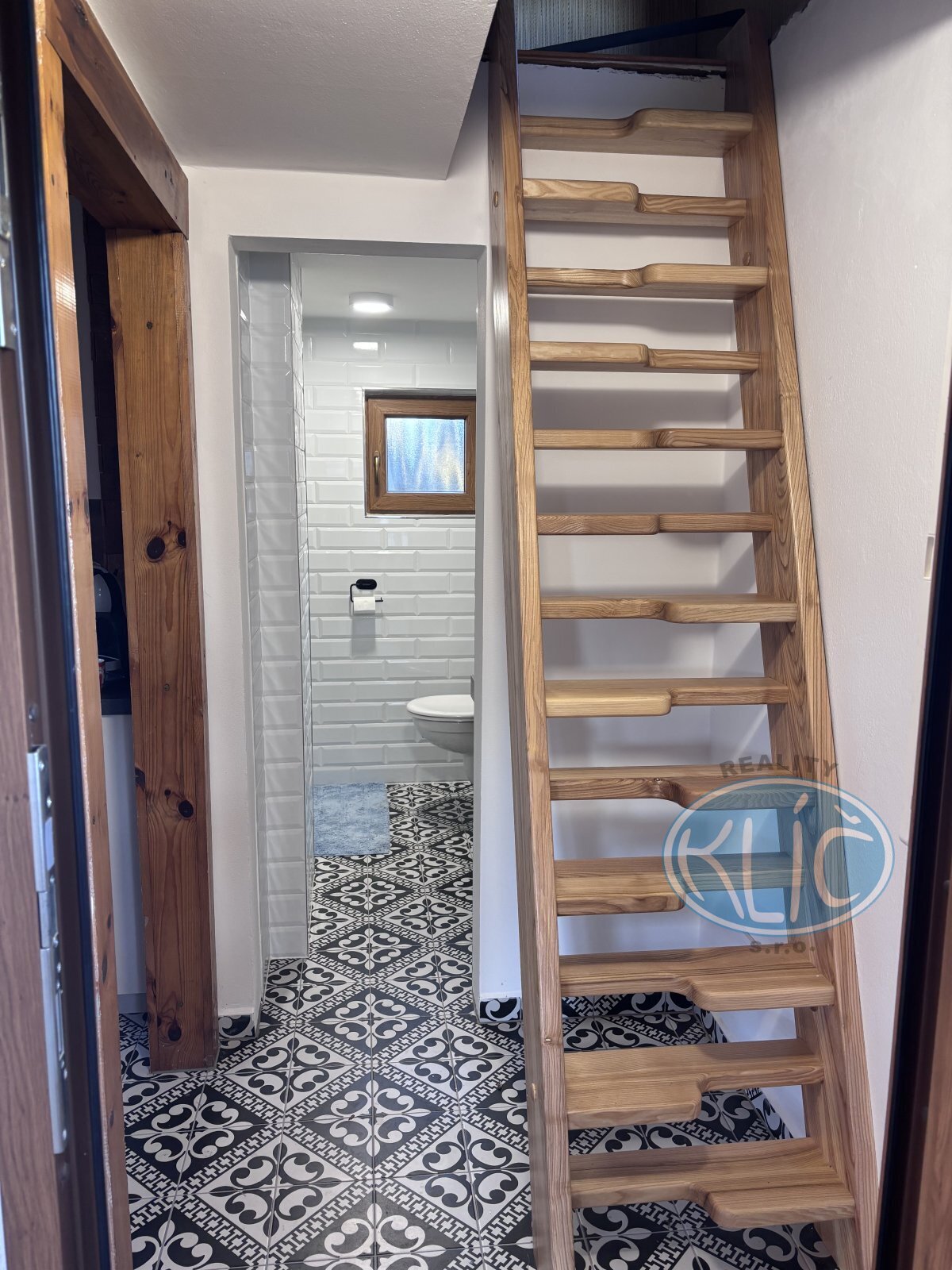 Rezervováno! Exkluzivně nabízíme k prodeji podsklepenou, zděnou rekreační chatu nacházející se na okraji Plané nad Lužnicí, v chatové oblasti na Strkově. Pozemek okolo chaty je oplocen, chata má zastavěnou plochu 20m2, užitnou plochu 56m2, zastřešenou verandu a pozemek s výměrou 434m2. Dispozice chaty: přímo z pozemku je vchod do suterénu, kde je umístěn sklep, ve sklepě bojler na ohřev vody a čerpadlo, z boku chaty vedou schody přes zastřešenou terasu s posezením do přízemí, kde je malá kuchyňka, spací část a velmi vkusně a plně vybavená koupelna s toaletou, sprchovým koutem a umyvadlem, do patra vedou dřevěné selské schody, kde je další obytný spací prostor. Součástí prodeje je vybavení a nábytek. Chata je zateplená, okna plastová dvojskla, nová střešní krytina a okapy. Inženýrské sítě - elektrika nová, nové odpady vedeny do septiku, Elektrika vyvedena také ven z chaty, zásuvky pro potřebu na zahradě k dispozici. Venkovní osvětlení na pohybová čidla. Na pozemku je vlastní retenční nádrž na dešťovou vodu 5000l, přivedena do chaty přes suterén . Vytápění v celém přízemí podlahové, elektrické. Komín zachován, možné připojení na krbová kamna. Na zahradě skleník 6x3m, ovocné stromy - švestka, jabloň, keře- rybíz a angrešt. Pozemek částečně zpevněn okrasnou betonovou dlažbou. Před chatou záhony s okrasnými trávami a levandulemi. Chata je situována v blízkosti zastávky MHD a dostupnosti občanské vybavenosti v Plané nad Lužnicí. Pro více informací volejte naši RK.