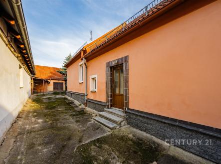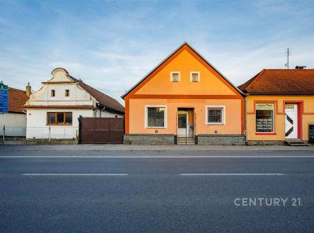 REZERVOVÁNO. Prodej přízemního rodinného domu vhodného jak k bydlení, tak i jako kombinace bydlení s podnikáním, a to v atraktivní lokalitě centra města Planá nad Lužnicí. Dům stojí přímo u hlavní komunikace, díky čemuž je ideální pro komerční využití, a současně nabízí klidné zázemí na uzavřeném dvorku. Umístění v centru města a vlastní dvůr vytváří z této nabídky zajímavý a flexibilní objekt. Nemovitost se nachází na pozemku o výměře 488 m², má zastavěnou plochu 143 m² a podlahovou plochu 95 m². Objekt je nyní přepažen na dvě samostatné části – komerční prostor se vstupem z ulice a bytovou jednotku v zadní části domu se vstupem přes dvorek. Přední část, využívaná ke komerčnímu pronájmu, tvoří dvě místnosti s keramickou dlažbou, přivedenou vodou, vytápěním plynovými WAW kamny a vlastním měřením plynu i elektřiny. Tyto prostory byly dlouhodobě komerčně pronajímány. Zadní část domu sloužila k bydlení – dispozičně 2+1. Nachází se zde zádveří, samostatné WC, komora se vstupem do menšího sklepa (4 m²), kuchyně se spíží, koupelna se sprchovým koutem (vytápění přímotopem) a druhý pokoj. Z chodby vedou schody na prostornou půdu pro případné rozšíření obytné části. Vstup do této obytné části je bočním vchodem z uzavřeného dvora, kam se přichází přes průjezd z ulice. Rekonstrukce z roku 2004 zahrnovala výměnu střešní krytiny za pálenou tašku, opravu krovu, výměnu plastových oken a novou fasádu. Interiér domu zůstal v původním stavu. Dům je napojen na veřejný vodovod, kanalizaci, elektřinu i plyn. Vytápění je lokální – plynovými kamny WAW a ohřev vody zajišťuje bojler. Součástí pozemku je i samostatná vedlejší stavba – stodola o užitné ploše cca 65 m² s půdním prostorem. Je smíšené konstrukce a rovněž se zrekonstruovanou střechou (pálená taška). Stodola je rozdělena na dvě části a proto její využití je možné jako dílna, sklad, garáž nebo další zázemí pro podnikání. Na dvoře se dále nachází dřevěná pergola a přístřešek vhodný pro uložení nářadí či sezonních věcí.