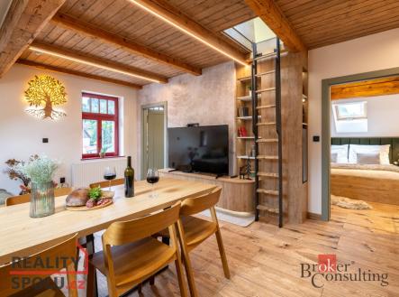 ENGLISH BELOW Vaše místo pro oddych či skvělá investiční příležitost Představujeme Vám jedinečný apartmán v historické secesní vile s minulostí i budoucností. Díky citlivé rekonstrukci Brůnovy vily vzniknul tento objekt spojující klasickou regionální architekturu a moderní design. Podhůří Jizerských hor láká svou přírodní krásou a historií a je současně vyhledávanou destinací pro milovníky zimních i letních sportů, turistiky, historických památek a objevitele nových malebných zákoutí. Nabízený apartmán představuje ideální zázemí díky dispozici 3+KK (podlahová plocha 63,35 m2) doplněné o obytnou půdu (25,83 m2). Více v přiloženém plánku. K nezaplacení je prostorný sklep (17 m2) a také vyhrazené parkovací stání. Celý objekt je zabezpečen systémem Jablotron. Není nad to se po dni plném zážitků náležitě zrelaxovat. Proto jistě Vy nebo Vaši hosté ocení saunu nacházející se přímo v apartmánu. Nemovitost je v současnosti využívána ke krátkodobému pronajímání s hodnocením Naprosto výjimečné v aplikaci Booking. V případě dalšího pronajímání této nemovitosti je díky reálným datům možné očekávat roční výnosnost okolo 10 %. Detaily s Vámi rád proberu na osobní schůzce. Prodávající si vyhrazuje právo vybrat kupujícího na základě jím zvolených kritérií. V případě úvěrového financování vyřídíme za vás všechny potřebné formality s nejlepším úrokem. ENGLISH Your place to relax or a great investment opportunity We present to you a unique apartment in a historic Art Nouveau villa with a past and a future. Thanks to the sensitive reconstruction of Brůnova's villa, this object was created combining classic regional architecture and modern design. The foothills of the Jizera Mountains attract with their natural beauty and history and are at the same time a sought-after destination for lovers of winter and summer sports, tourism, historical monuments and discoverers of new picturesque corners. The offered apartment represents an ideal housing thanks to the layout of 3+KK (floor area 63.35 m2) supplemented by a gallery (25.83 m2). More in the attached plan. There is a spacious cellar (17 m2) and also a reserved parking space. The entire facility is secured by the Jablotron system. There is nothing better than relaxing properly after a day full of experiences. That's why you or your guests will certainly appreciate the sauna located right in the apartment. The property is currently being used for short-term rental with a rating of Absolutely Exceptional in the Booking application. In case of further renting of this property, based on real data, it is possible to expect an annual yield of around 10%. I will be happy to discuss the details with you in a personal meeting. The seller reserves the right to select the buyer based on the criteria selected by him. In the case of loan financing, we will handle all the necessary formalities for you with the best interest.