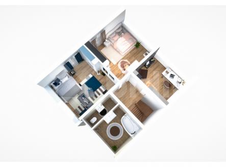 Připravujeme pro vás výstavbu rodinného domu o dispozici 5+kk, se dvěma koupelnami. V projektu je kladen důraz na promyšlené dispoziční uspořádání interiéru. V přízemí se nachází prostorný obývací pokoj s kuchyňským koutem, jeden pokoj, koupelna a technická místnost. V rohu obývacího pokoje se nachází komín, na který je možné připojit krbová kamna. Na terasu se dostanete jak z obývacího pokoje tak z ložnice francouzským oknem. V prvním NP jsou 3 obytné pokoje, koupelna a samostatné WC. Parkování je zajištěno na vlastním pozemku, kde se nachází dvě prostorná parkovací stání. Terasa o rozloze 27 m2 je přizpůsobená pro příjemné posezení. Na pozemku o rozloze 655 m2 lze vybudovat bazén, zahradní domek, pěstování vlastní zeleniny nebo prostorné hřiště pro děti. Cena domu obsahuje vše, co je potřeba ke kolaudaci a bydlení. V ceně je tedy pozemek, dům, zateplení, fasáda, kombinované podlahové topení, okna, dveře, sanita, venkovní žaluzie, tepelné čerpadlo, komín, připojení na IS (voda, elektřina, kanalizace) právní a finanční servis. Přehled standardů naleznete zde. Nad rámec ceny je potřeba počítat s cenou kuchyňské linky a oplocení. Dále je možné se domluvit na individuální sanitě, podlahách, dveří a dalších zařizovacích předmětů. Jako nadstandard možné do domu nainstalovat chytrou domácnost nebo bezpečnostní systém, případně zajistit oplocení ve dvou variantách. Kolaudace léto 2026 Více na develophk cz.