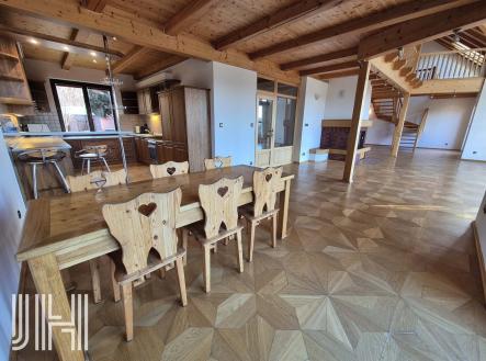 Nabízíme k prodeji solitérní vilu nacházející se ve vyhledávané lokalitě vilkové čtvrti Plumlova s úžasným panoramatickým výhledem. Dům postavený v roce 2000 má velmi neobvykle pojatý interiér propojující přírodu a bydlení. Třípodlažní stavba je umístěná v terénu tak, že z uliční strany je viditelné pouze přízemí s podkrovím a hlavní pohled na stavbu a všechna podlaží je ze zahrady. Dům vel. 4+kk s garáží má v přízemí přístupném z uliční strany vjezd do dvojgaráže, halu s komorou, sam. WC a schodištěm do suterénu, velkorysý obytný prostor s krbem a kuchyňským koutem, schodiště do podkroví s galerií, 2 pokoje, koupelnu (roh. vana, 2x umyvadlo, WC, bidet) a technickou místnost (plyn. kotel, zásobník na teplou vodu, místo pro pračku a sušičku). V suterénu s výhledem do zahrady se nachází hobby místnost, sauna s prostornou vířivkou, místnost s WC a bidetem a samostatné WC. Dům je napojen na veškeré inž. sítě, plynové vytápění kombinace radiátorů a podlahového vytápění, krb v obývacím pokoji, ohřev teplé vody plyn. zásobníkem. Nový kotel ústředního vytápění, zabezpečovací zařízení. Dům je volně postaven na pozemku hlavním průčelím a zahradou orientovanou na západní stranu s výhledem na Drahanskou vrchovinu, zahrada oplocená, osázená okrasnými dřevinami s bazénem, zahradním domkem a tenisovým kurtem. Možnost zakoupení sousedního pozemku o vel. 626 m2. Výborná poloha domu v klidné části městyse a veškerou infrastrukturou v blízkosti Plumlovské přehrady a Podhradského rybníka jako vyhledávané rekreační lokality. PENB – G. Zastavěná plocha: 183 m2, zahrada: 1.466 m2.