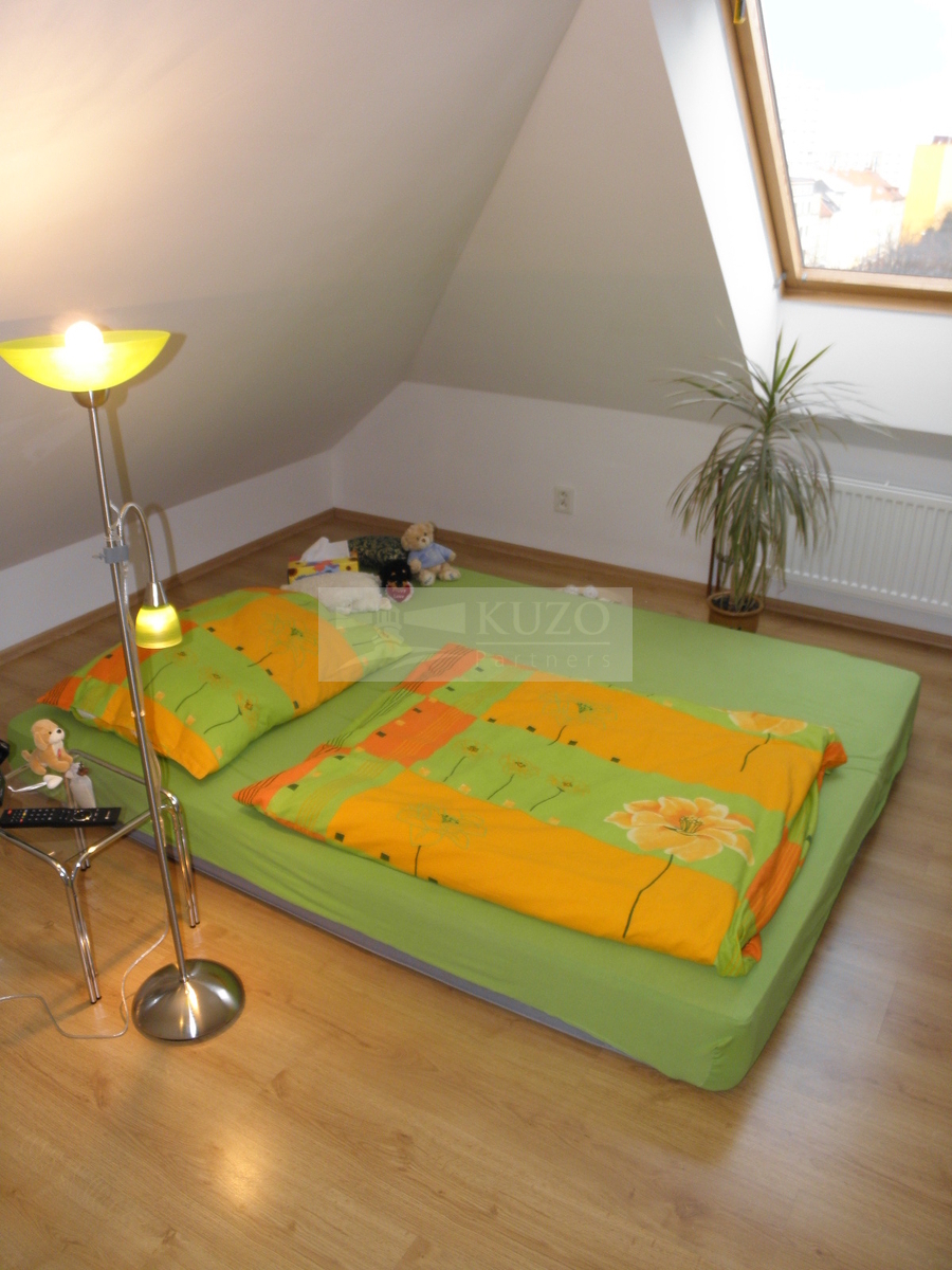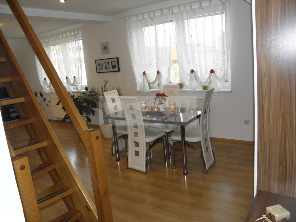 Nabízíme k pronájmu byt 2+1 v ulici Dvořákova. Jedná se o byt ve velmi dobrém technickém stavu. Byt je mezonetový (dvoupodlažní byt s vnitřním schodištěm) a nachází se v 5. patře bytového domu po rekonstrukci. Výtah v domě není. Sedmdesát čtyři metrů čtverečních obytné plochy je rozděleno do dvou podlaží. V přízemí bytu se nachází velká obytná místnost s okny orientovanými na jihovýchod o velikosti 36 m², která plní společenskou funkci. Samostatná kuchyně má 8 m² a je vybavena rohovou kuchyňskou linkou a spotřebiči; denní svit je zajištěn střešním oknem. Obývací pokoj je od kuchyně oddělen otvorem ve zdi velikosti okna a širokým vstupem do chodby, čímž je prostor opticky i funkčně zvětšen. Dřevěné otevřené schodiště vede do podkroví, kde se nachází ložnice o velikosti 18 m². V podkroví dominují zkosené stropy, které vytvářejí útulnou atmosféru a zvýrazňují charakter bytu. K bytu patří koupelna s vanou a samostatná toaleta s umývátkem. Vybavení nemovitosti: Topení zajištěno radiátory s centrálním dálkovým zdrojem, teplá voda rovněž centrálně dálkově. Dopravní dostupnost: dálnice, silnice a městská hromadná doprava (MHD). Internet. Byt se pronajímá nezařízený. Vhodný a ideální pro pár, pro zájemce oceňující prostorný mezonet. Bezpečné bydlení s veškerou občanskou vybaveností v dosahu pěší chůze. V okolí se nacházejí: obchody, služby, lékařská péče, restaurace. Topení a ohřev vody zajišťuje Plzeňská teplárenská. Pohodlný a praktický život. V případě zájmu o prohlídku nás neváhejte kontaktovat.