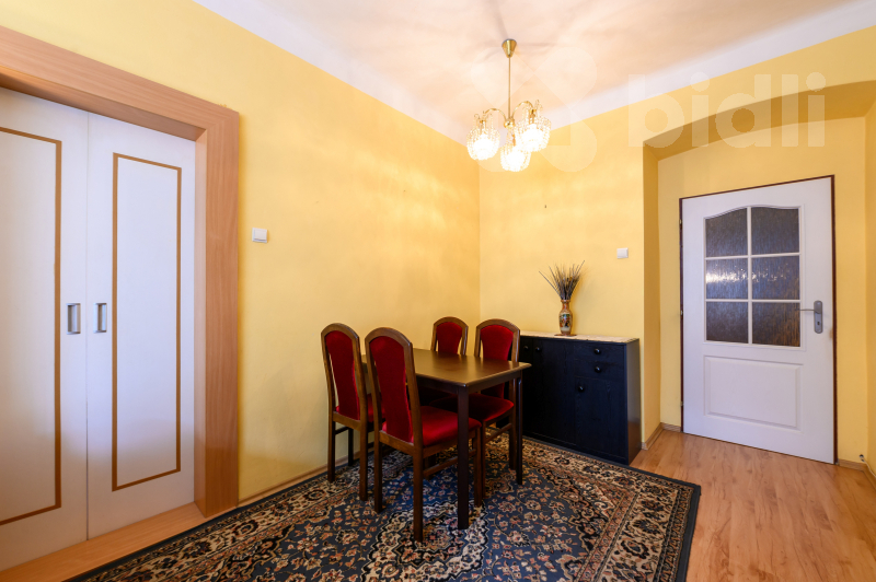 Pronájem vybaveného bytu 2kk o celkové výměře 59,6 m2 se nachází ve 2. patře zděného bytového domu. V bytě je předsíň, obývací pokoj s jídelnou, kuchyň, ložnice, koupelna se sprchovým koutem a samostatným WC. Byt prošel v minulosti rekonstrukcí, nové obklady dlažby, podlahy, nové dveře. K bytu náleží sklep a k užívání je i společná terasa se zahradou. Vytápění zajišťují vafky a ohřev vody plynový bojler. Náklady na bydlení (voda, plyn, elektřina) jsou do 4000,- (dle obsazenosti). Byt je vhodný pro rodinu nebo pár hledající klidné bydlení s dobrou dostupností do centra města. Veškerá občanská vybavenost v blízkém okolí - školy, školky, obchody, bazén, MHD.