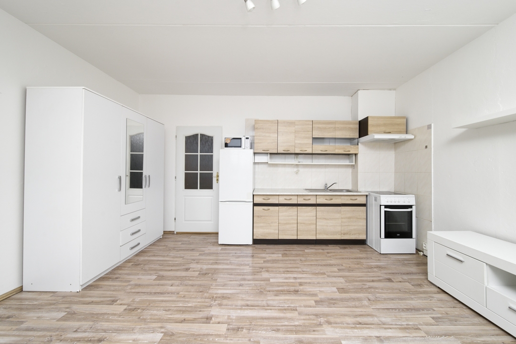 K dlouhodobému pronájmu nabízíme byt 1+kk s lodžií v Plzni Bolevci, ulice Nýřanská. Bytová jednotka o výměře 35 m2 je situována do 8. nadzemního podlaží revitalizovaného panelového domu s výtahem. Kuchyňský kout je vybavený kuchyňskou linkou, elektrickým sporákem se sklokeramickou varnou deskou, lednicí, mikrovlnnou troubou a digestoří. V bytě dále zůstává pračka a šatní skříně. Vytápění je ústřední, stejně tak i teplá voda je dodávána dálkově. Pro TV přenos je zde společná anténa, zavedena je kabelová televize a internet. K bytu náleží sklep. Nájemné činí 10.000 Kč + 1.500 Kč/1 osoba nebo 1.800 Kč/2 osoby zúčtovatelné zálohy na služby spojené s užíváním bytu. Elektřina se převádí na nájemce (cca 600 Kč). Jistota (vratná kauce) je požadována ve výši 10.000 Kč. Provize RK 12.100 Kč. Byt je volný ihned. V místě je veškerá občanská vybavenost a velmi dobrá dostupnost MHD (BUS č. 30, TRAM č. 1). Pro bližší informace či domluvení prohlídky, volejte na uvedený mobilní telefon.