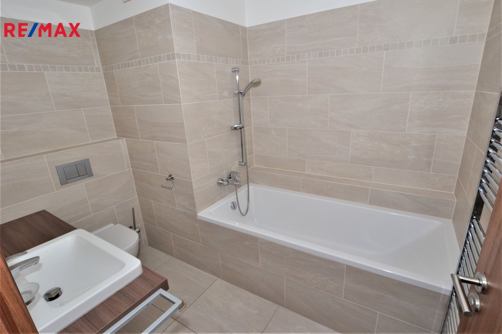 Byt 2+kk o výměře cca 54 m2 včetně terasy (8,6 m2) se nachází ve 3. patře novostavby v Plzni - Černicích ve Vltavínové ulici. Kuchyňský kout je vybaven moderní kuchyňskou linkou se sklokeramickou varnou deskou, multifunkční el. troubou, myčkou nádobí a lednicí s mrazákem. Pokoj s kuchyňským koutem je průchozí do druhého pokoje. Z obou pokojů je samostatný vstup na terasu. Koupelna je s vanou a toaletou. Úložné prostory nabízí šatna. V ceně nájmu je garážové stání a lze využívat sklep (2 m2). V domě je výtah a je zajištěn úklid společných prostor. Vytápění bytu a ohřev vody zajišťuje vlastní plynový kotel. Ve vzdálenosti cca 100 m od domu je zastávka MHD, v blízkém dosahu je nákupní centrum Olympia. Měsíční záloha na služby činí 1.150 Kč, plyn a el. si převede nájemce na sebe, kauce je 17.150 Kč, provize RK je 16.000 Kč + 21 % DPH.