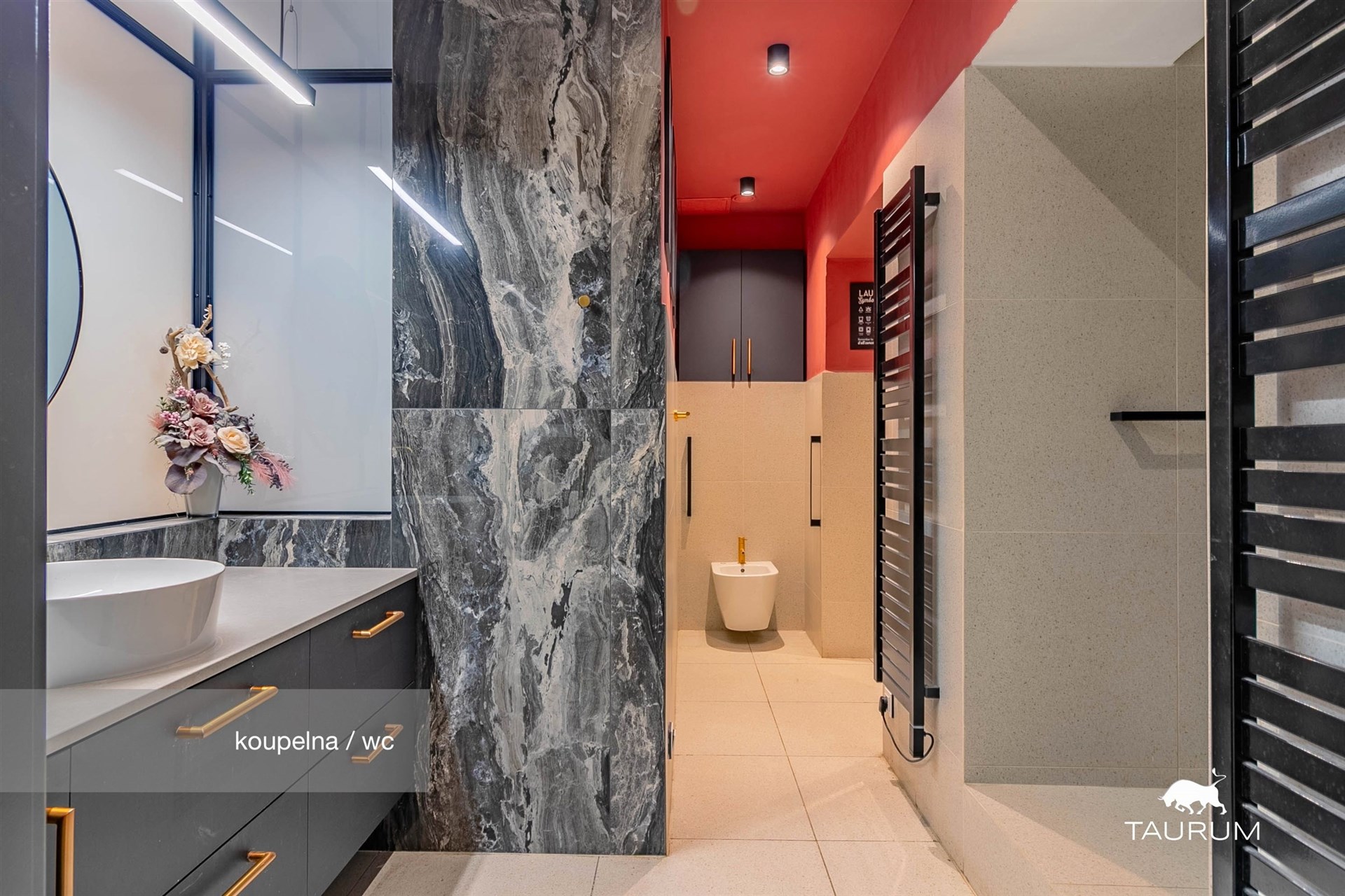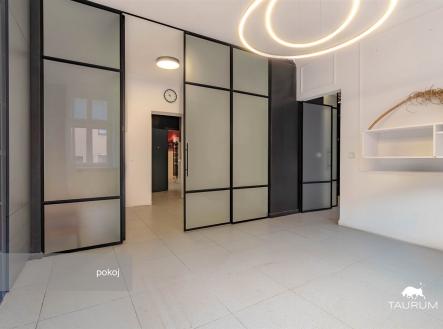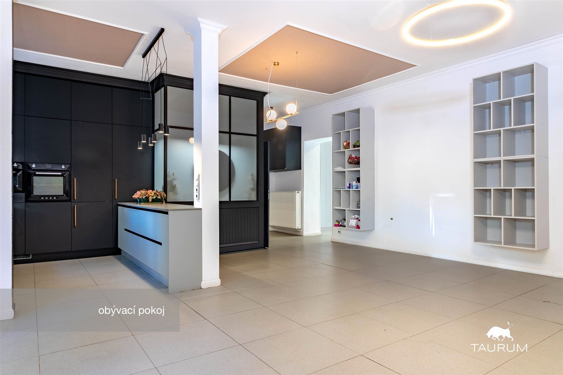 Nabízím k prodeji výjimečný byt o dispozici 4+kk a celkové užitné ploše 157 m². Byt je situovaný v 1. patře cihlového bytového domu. Podívejte se na samostatnou webovou stránku na odkaze ve video prohlídce. Dominantou bytu je velkorysý obývací pokoj s kuchyňským koutem a funkčním krbem. Kuchyň i ostatní části bytu jsou vybaveny zakázkovým nábytkem na míru, který perfektně ladí s celkovým designem bytu a zároveň nabízí velké množství úložného prostoru. Kuchyňská linka disponuje značkovými spotřebiči a kamennou pracovní deskou. Byt dále disponuje dvěma samostatnými šatnami a velkými vestavěnými skříněmi. Luxusní koupelna je navržena s důrazem na detail – najdete zde kvalitní materiály a elegantní design. Celý byt působí velmi vzdušně a svěže. Byt je vhodný pro ty, kteří hledají reprezentativní prostory pro rodinné bydlení, tak i sídlo firmy nebo investiční příležitost, v prémiové lokalitě. Lokalita: Byt se nachází v Koperníkově ulici č.p. 6. Jedná se o centrum Plzně, takže vše důležité máte doslova za rohem. Současně tento cihlový bytový dům nabízí výborné bydlení s charakterem. Vzhledem k jeho umístění nebudete primárně auto potřebovat, ale kdybyste ho přece jen vlastnili, tak parkovací karta zde stojí pouhých 1.000,Kč na celý rok, nebo je možné si pronajmout parkovací místo v podzemních garážích v jednom z blízkých parkovacích domů (U Tržiště vzdálený 90m, nebo Kollárova a Nerudova). Jedná se bezesporu i o výbornou investiční příležitost. Lokalita v centru Plzně si dlouhodobě drží vysokou hodnotu – jde o ideální nemovitost jak pro vlastní bydlení, tak pro dlouhodobou investici. Vysoký standard bytu spolu s atraktivním umístěním zajišťují stabilní zájem nájemníků i kupujících. Dispozice bytu: Aktuální dispozice bytu je 4+kk s velkorysou výměrou podlahové plochy 157m². Světlý a prostorný obývací pokoj s krbem a kuchyňským koutem, kde jsou okna směrována na západ do vnitrobloku. Předsíň s designovým nábytkem na míru, který poskytuje dostatek úložného prostoru. Koupelna se sprchovým koutem, ve které je jak ruční sprška, tak i velká hlavová sprcha s tropickým deštěm a vodopádem a umyvadlo na kamenné desce. Byt má nyní tři pokoje, z čehož jsou dva neprůchozí, a právě ty mají přímý vstup do šatny, ve kterých je trezor s číselným i biometrickým zámkem. Všechny tři pokoje mají okna orientována na východ a jsou krásně světlé. V neposlední řadě má byt technickou místnost s plynovým kotlem a komoru. Technické údaje: Celý byt prošel v roce 2021 velice zdařilou rekonstrukcí. Byt je vytápěn novým plynovým kotlem se zásobníkem teplé vody a digitálním termostatem. Jako topná tělesa jsou zde radiátory. Okna jsou platová s dvojskly. Dále je zde možnost využívat společný vnitroblok za domem. V bytě při focení, natáčení a 3D skenování probíhalo vyklízení, omluvte proto prosím, některé detaily. Jiří Seidl TAURUM reality (Výměry jsou pouze orientační)