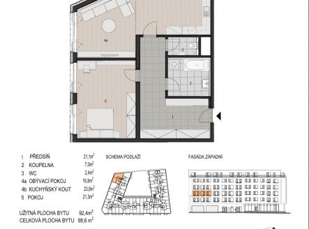 Nabízíme byt č. 3.26 o dispozici 2+kk ve 3. nadzemním podlaží moderního rezidenčního projektu Bydlení Šumavská v Plzni. Celková plocha bytu činí 98,6 m².  Dispozice je řešena velmi komfortně a neobvykle velkoryse pro kategorii 2+kk. Nabízí obývací pokoj (16,8 m²) s odděleným kuchyňským koutem (23,8 m²), samostatný pokoj (21,3 m²), koupelnu (7,0 m²), samostatné WC a mimořádně prostornou předsíň o velikosti 21,1 m², která poskytuje velkorysý vstupní prostor i nadstandardní možnosti úložného řešení.  Součástí ceny je sklepní kóje, k dispozici je možnost dokoupení garážového stání. Byt bude dokončen ve standardním provedení projektu s možností klientských úprav. Projekt je aktuálně ve výstavbě s plánovaným dokončením na podzim 2027. Energetická třída A zajišťuje úsporný provoz a moderní standard bydlení. Lokalita nabízí kompletní občanskou vybavenost a výbornou dostupnost centra města i MHD.