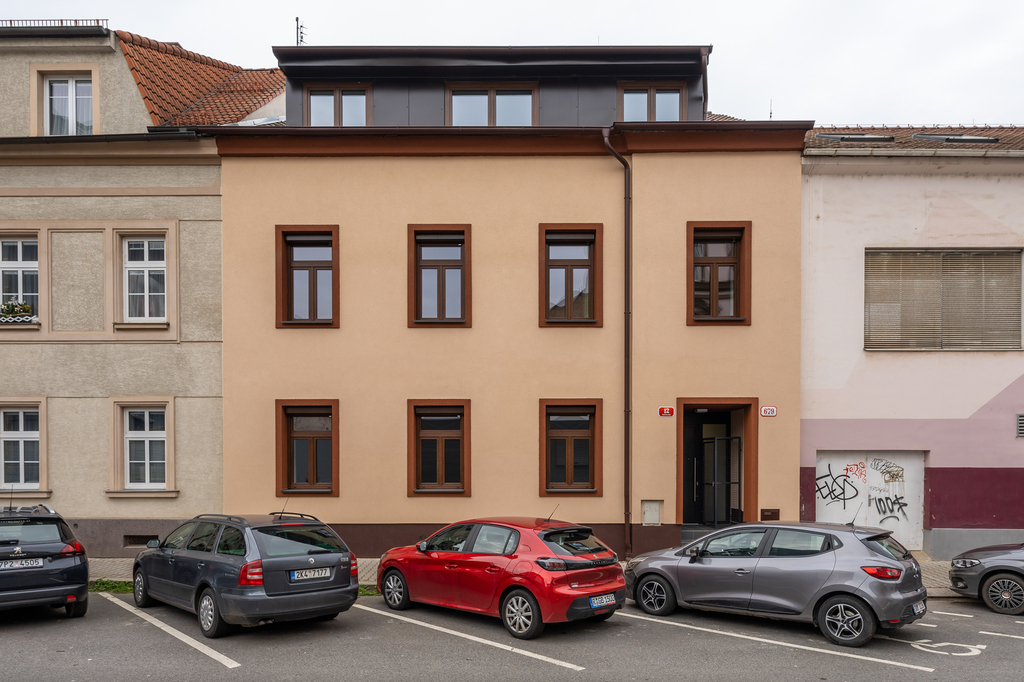 K dlouhodobému pronájmu nabízíme moderní byt 2+kk (41 m2) s balkonem (8 m2) v širším centru města Plzně na Jižním Předměstí, ulice Skrétova. Byt je situován do 2. nadzemního podlaží (z celkových 3) zatepleného cihlového domu. Dispozice zahrnuje obývací pokoj s kuchyňským koutem, ložnici, předsíň a koupelnu s toaletou. Velká francouzská okna v obývacím pokoji nejen příjemně prosvětlují tento prostor, ale zároveň umožňují vstup na prostorný balkon orientovaný do klidného vnitrobloku. K bytu náleží také sklepní kóje (2 m2). Součástí vybavení je kuchyňská linka včetně vestavné elektrické trouby, sklokeramické varné desky, digestoře a myčky nádobí. Neschází ani koupelnový nábytek, úsporné LED osvětlení a venkovní okenní rolety s elektrickým ovládáním v ložnici. Balkon je vybaven venkovním osvětlením i elektrickou zásuvkou. Vytápění bytu je ústřední, totéž dodávka teplé vody. Na vše jsou samostatná měřidla. Na vše jsou samostatná měřidla. Středová poloha bytu v zatepleném domě přispívá nejen k vyššímu tepelnému komfortu, zvláště v zimních měsících, ale také k úspoře nákladů na jeho vytápění. Na této adrese umožňuje pevná síť CETIN připojení optikou s rychlostí až 2 Gb/s. K dispozici jsou poskytovatelé jako je O2, Vodafone, T-Mobile apod. Datové a televizní zásuvky jsou v obývacím pokoji i v ložnici současně. TV přenos je dále zajištěn společnou televizní anténou. Byt se nachází ve skvěle dostupné části Plzně, jen pár minut chůze od centra i zastávek MHD. V těsné blízkosti najdete širokou občanskou vybavenost, obchody, restaurace i kavárny. Ideální volba pro jednotlivce či pár hledající moderní bydlení v centru dění. Cenové podmínky pronájmu: • Nájemné 15.900 Kč/měsíc • Zúčtovatelné zálohy na energie a služby vyjma elektřiny 3.000 Kč/1 osoba/měsíc 3.500 Kč/2 osoby/měsíc • Elektřinu si nájemce převádí na sebe (cca 1.000 Kč/měsíc) • Jistota (vratná kauce) 35.000 Kč • Provize RK 19.300 Kč K nastěhování od 1.3.2026. Pro bližší informace či domluvení prohlídky volejte na uvedený mobilní telefon. Pro zjištění rozměrů místností a objektů v prostoru využijte možnost měření ve virtuální prohlídce pomocí ikony pravítka v levém dolním rohu.
