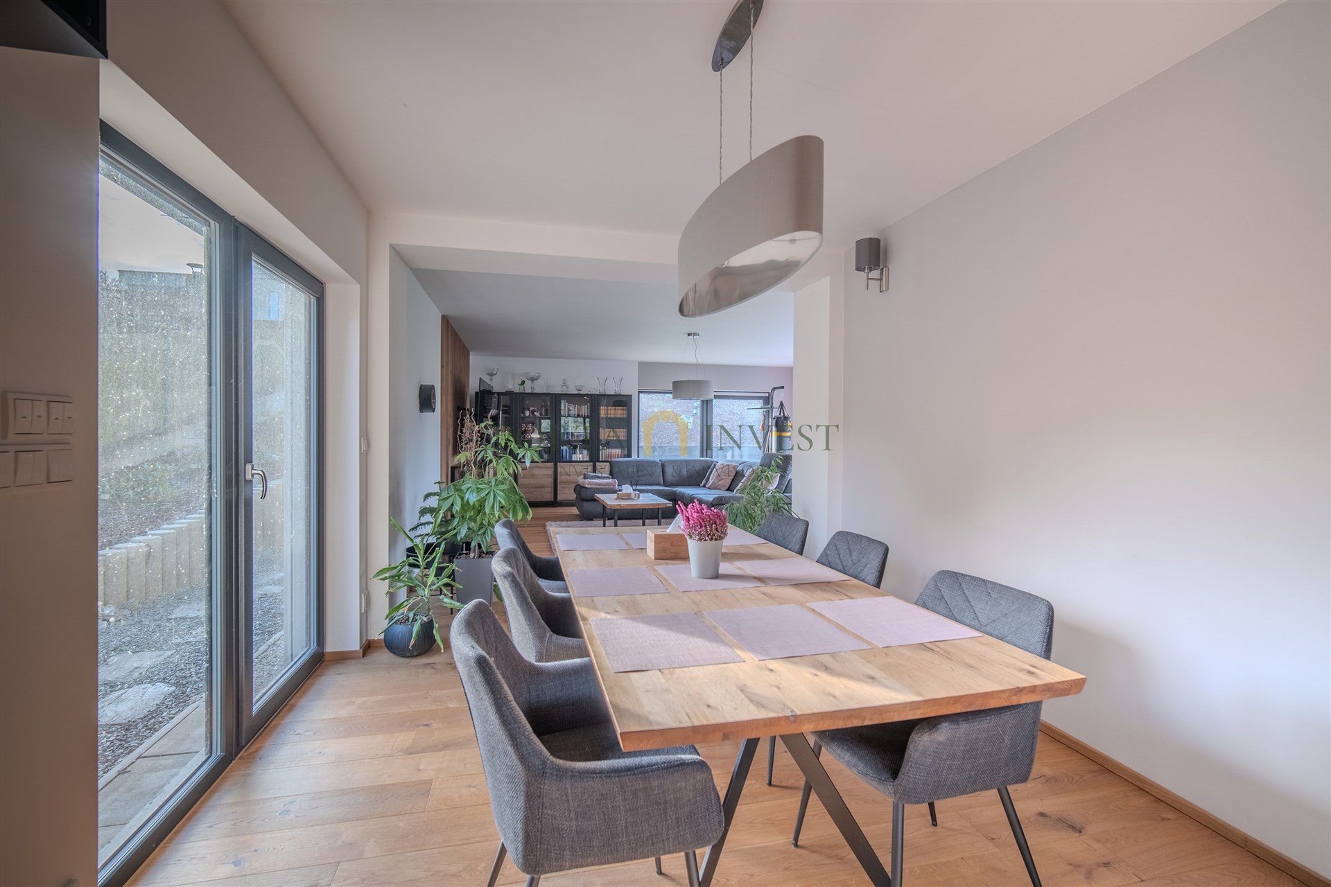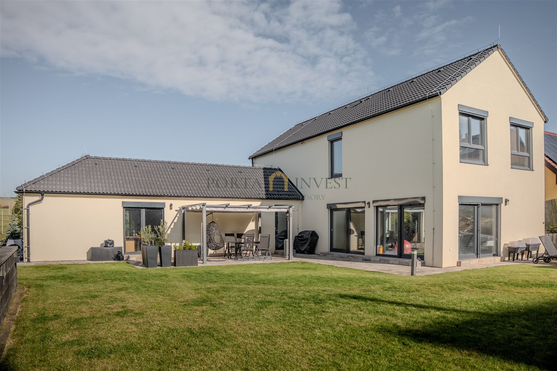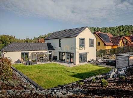Nabízíme k prodeji prostorný a zároveň útulný rodinný dům 6+1 se zahradou (celková plocha pozemku 1315 m2), v klidné lokalitě městské části Plzeň 9 – Malesice. Stavba, kolaudovaná v roce 2023, má půdorys písmene L s velmi příjemnou jižní a západní orientací. Centrální místností domu je obývací pokoj s francouzskými okny a výhledem do zahrady, propojený s jídelnou a plně vybavenou kuchyní. V přízemí se dále nachází samostatná ložnice s vlastní šatnou a koupelnou se sprchovým koutem a toaletou. V patře jsou tři samostatné pokoje, praktická šatna, koupelna s vanou a sprchovým koutem a samostatné WC. K dispozici jsou i další promyšlené úložné prostory (vestavné skříně, nábytek). Velmi příjemné klima v celém domě vytváří hliníková okna s trojskly a elektrickými předokenními roletami, dřevěná plovoucí podlaha a stylová dlažba. Do každé obytné místnosti je rozveden internet. Dům je vytápěn efektivním elektrickým podlahovým topením se samostatnou regulací jednotlivých místností, v obývacím pokoji je provedena příprava pro instalaci krbu. Na terase domu (kam lze vstoupit z každé přízemní obytné místnosti) se nachází jak zastíněná pergola, tak i další relaxační prostor s venkovní saunou, vířivkou a sprchou. Zahrada je zde především k odpočinku (automatické sekání trávníku, závlaha). K dispozici je zahradní domek na nářadí a techniku, vkusně upravené kamenné svahy jsou osázeny zelení. Přímo na pozemku se nachází dvě parkovací stání, další stání je na vlastním neuzavřeném pozemku přímo před domem. Celý dům je zabezpečen kamerovým systémem. Místo nabízí především klidné bydlení v kontaktu s přírodou a zároveň výhody krajského města. Městská část Malesice poskytuje spojení městskou dopravou do centra, autem jste u OC Plaza za 9 minut, výborné je napojení na východní městský okruh a výpadovky. Koupi nemovitosti lze financovat i hypotečním úvěrem, který vám v případě zájmu pomůžeme zajistit.